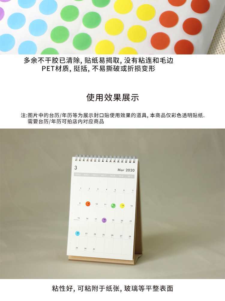 Venta al por mayor color transparente pegatina de punto ins Diario calendario Marca etiqueta color sólido simple decoración de tarjeta fotográfica