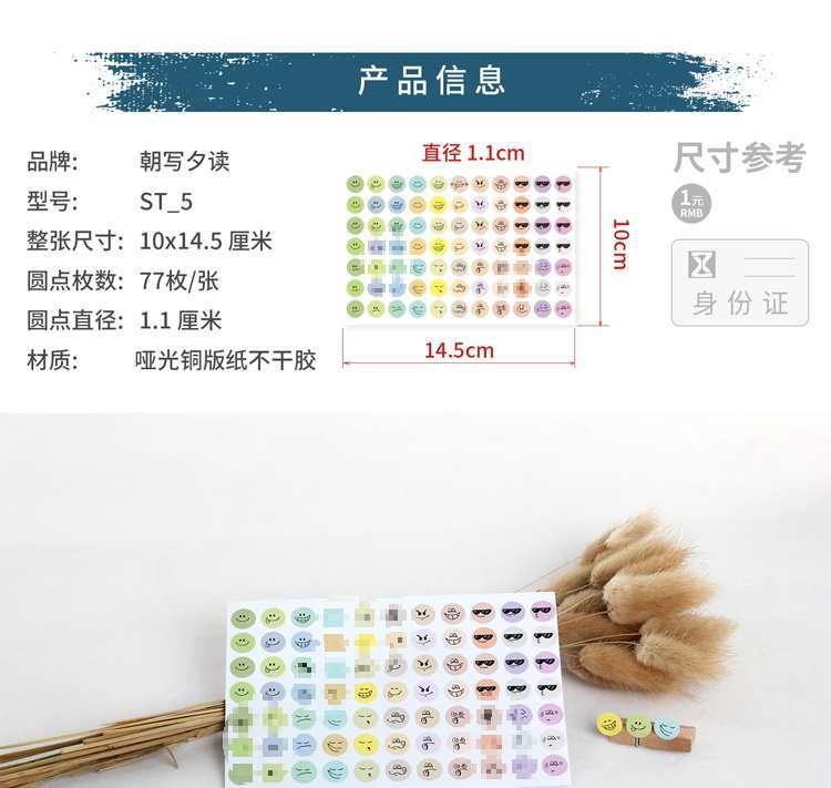 Transparent stickers 77 pieces/x10 pieces PET translucent, 77 emoji stickers/x10 PET non-transparent, 5 transp...