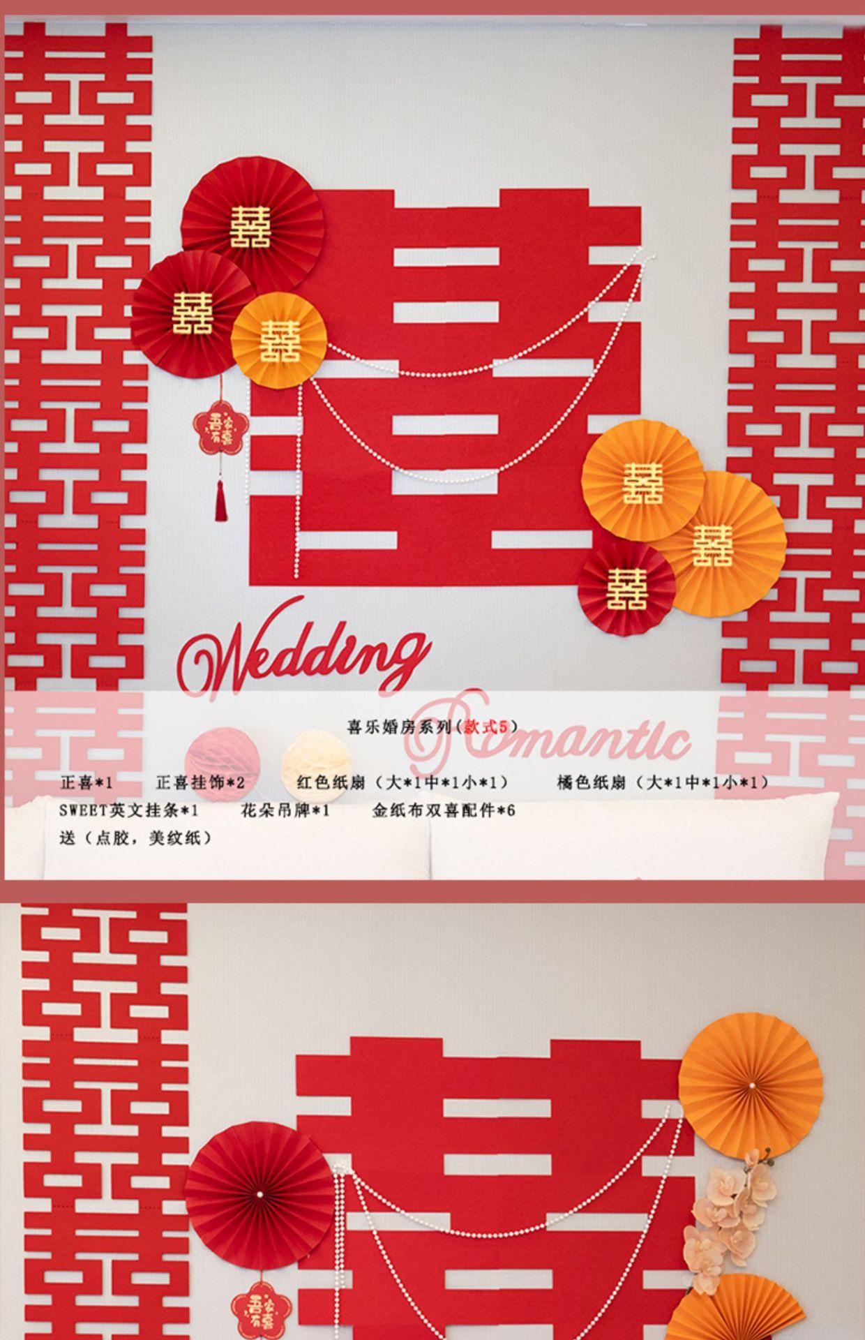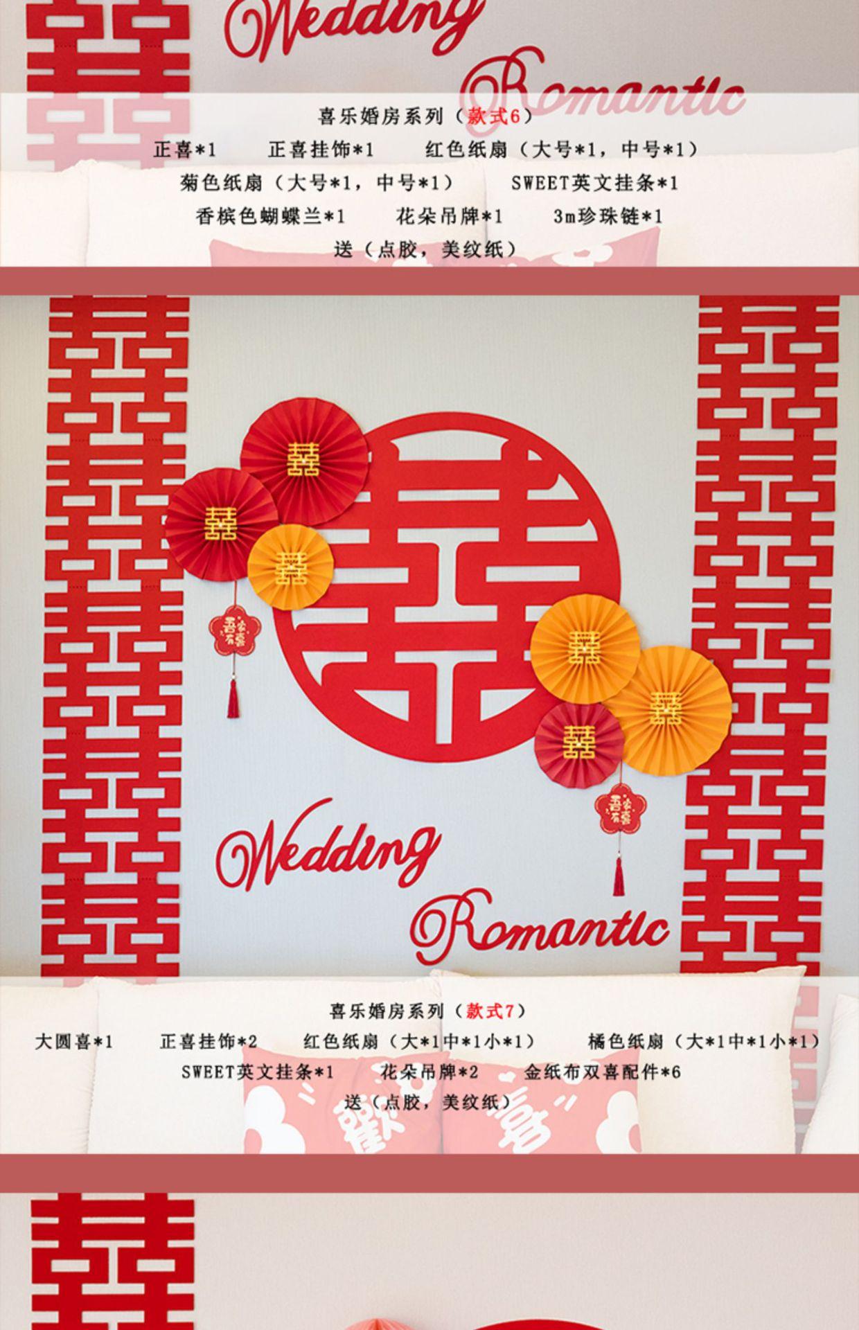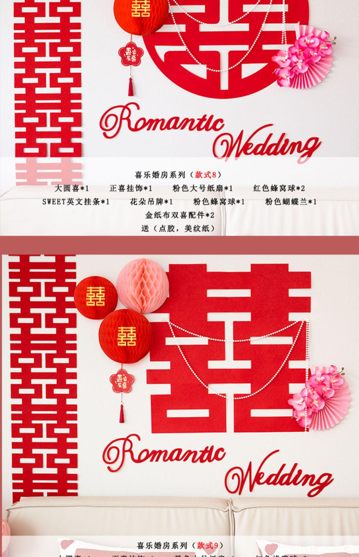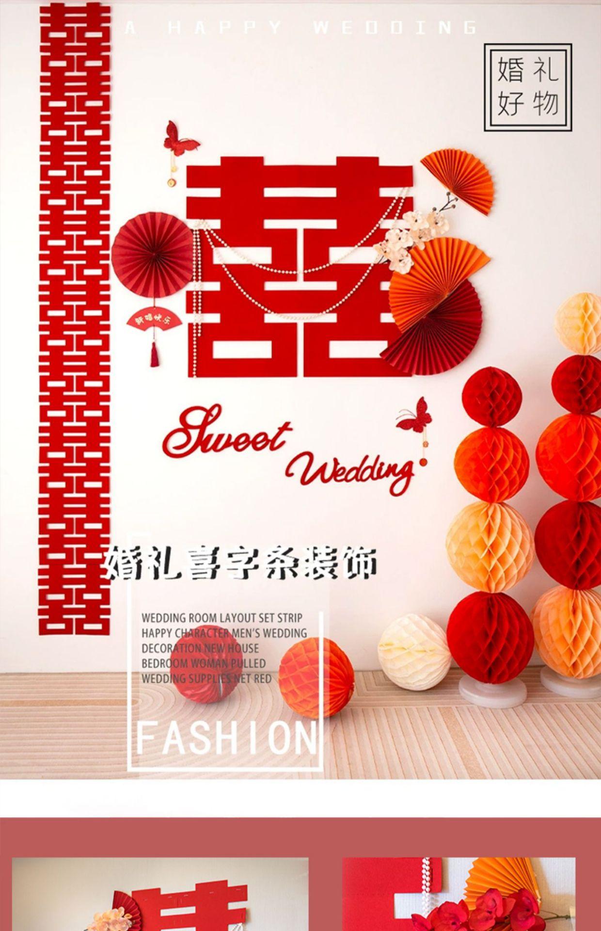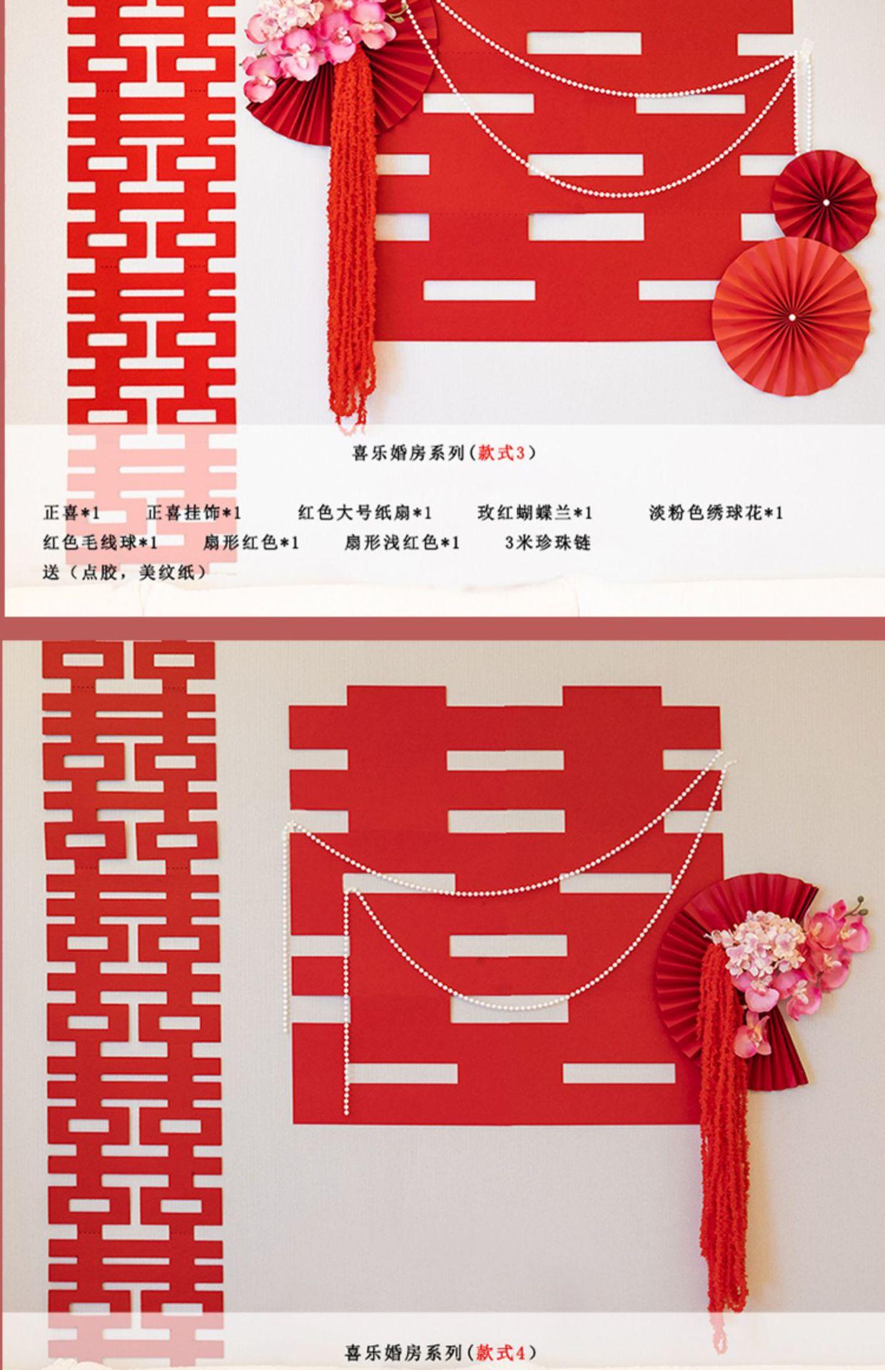 Traje de decoración para habitación de bodas, decoración de casa nueva, guirnalda, habitación para mujer, habitación de noche, pared de fondo, carácter Xi, suministros para regalo de bodas