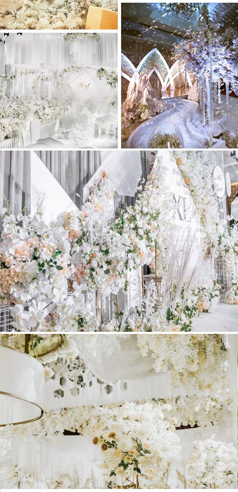 Boda Blanca Ramo Falso Flor Decorativa de Hoja para Salón de Bodas Paisajismo Flor Artificial Flor de Plástico Hecha a Mano Arreglo de Piso
