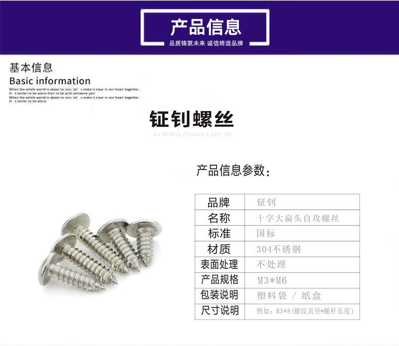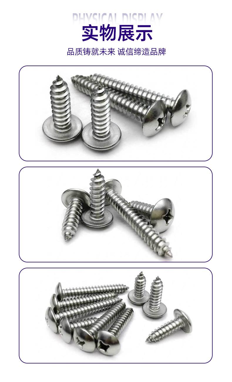 Tornillo autorroscante de cabeza plana grande con forma de paraguas, cabeza de hongo, cola puntiaguda, de acero inoxidable 304, M5, directo de fábrica
