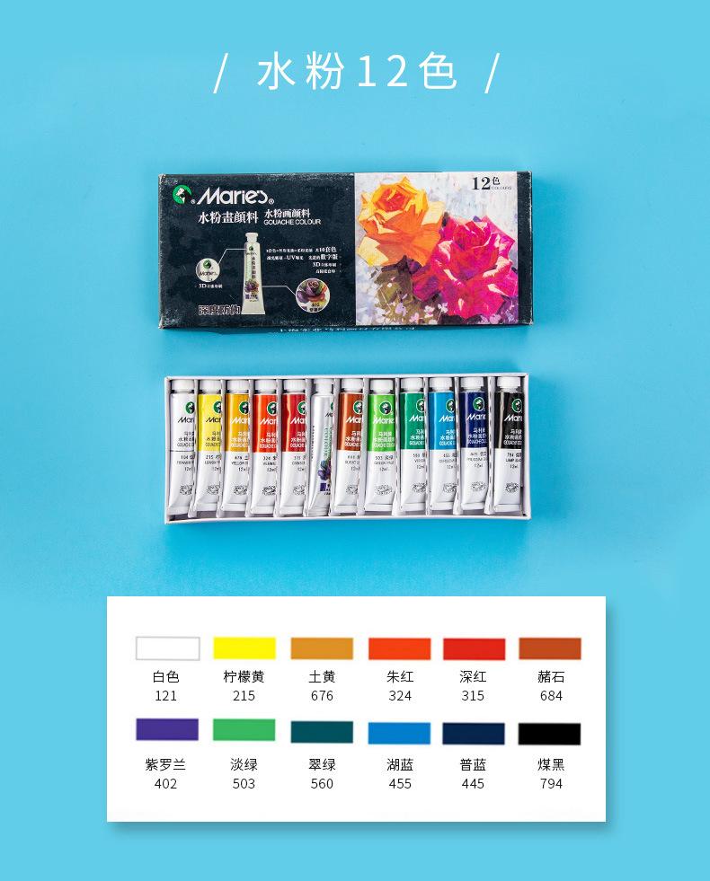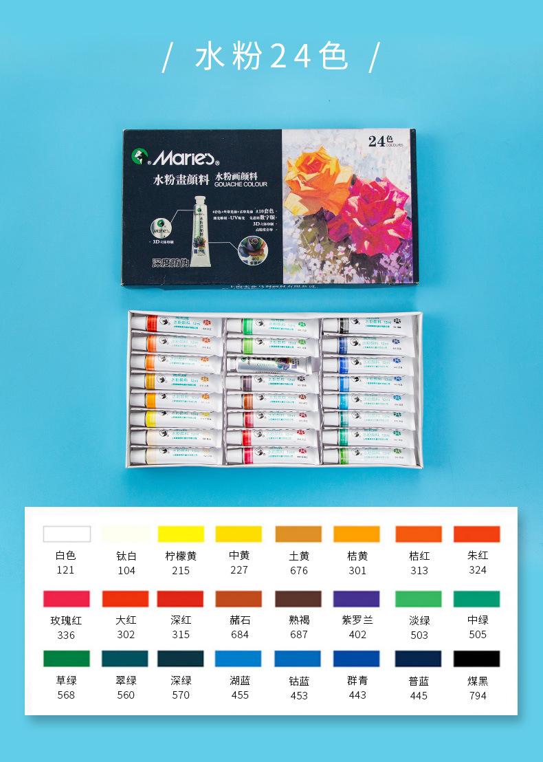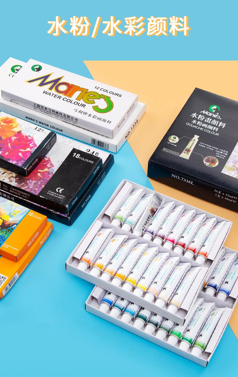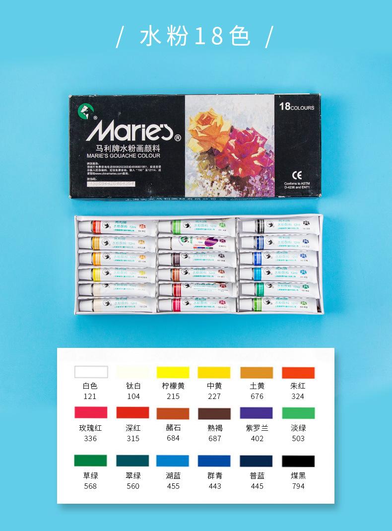 Set de pintura gouache marca Marley 12 colores 18 colores 24 colores 12 ml tubo de aluminio para estudiante pintura gouache al por mayor