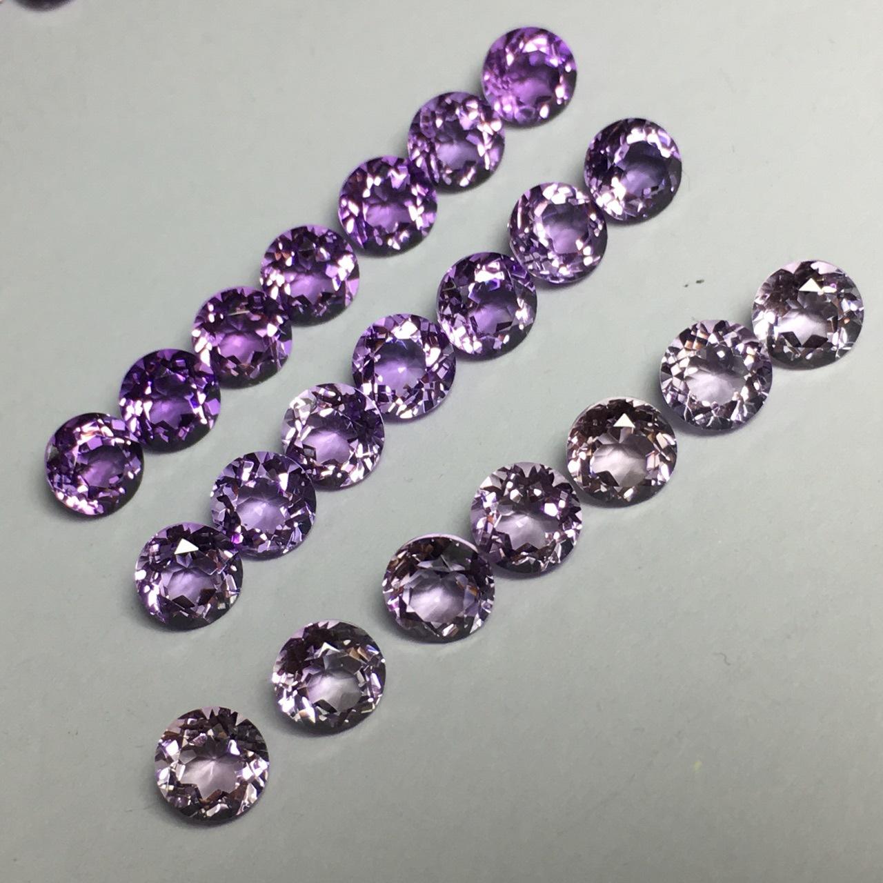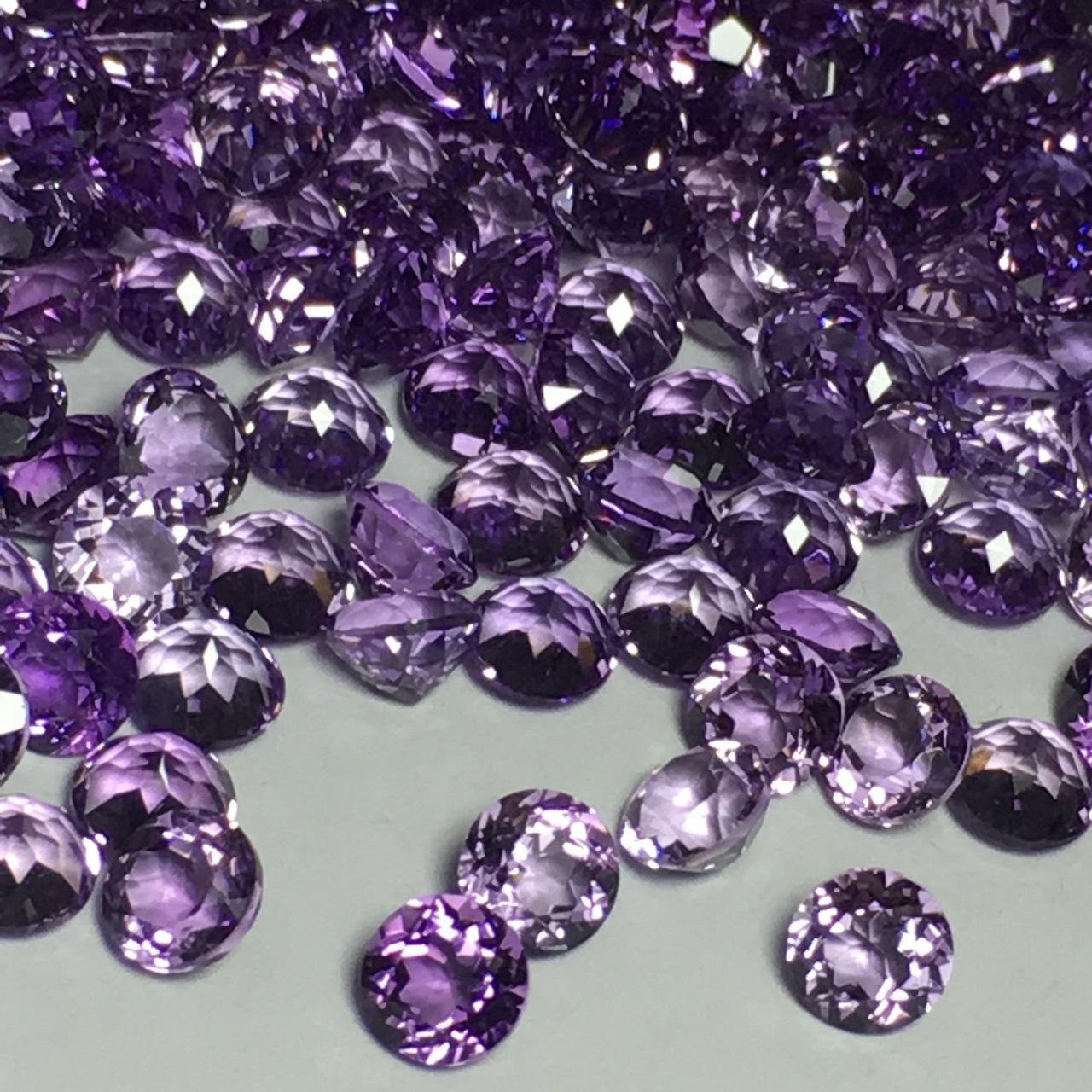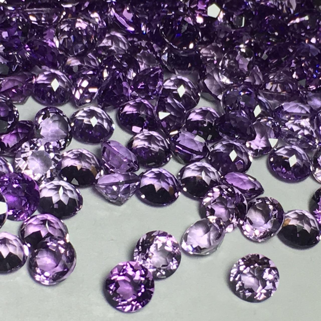 Suministro directo de fábrica de amatista natural redonda de 5 mm.. Joyería facetada de 5MM y 6mm con piedra
