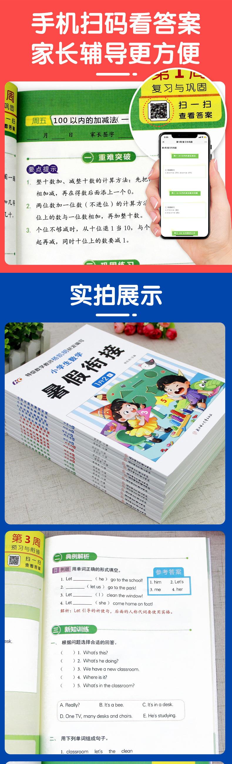 Tarea de cohesión de vacaciones de verano 1 litro 2 litros 3 litros 4 litros 5 litros 6 cohesión escolar Matemáticas chinas Inglés entrenamiento intensivo especial