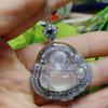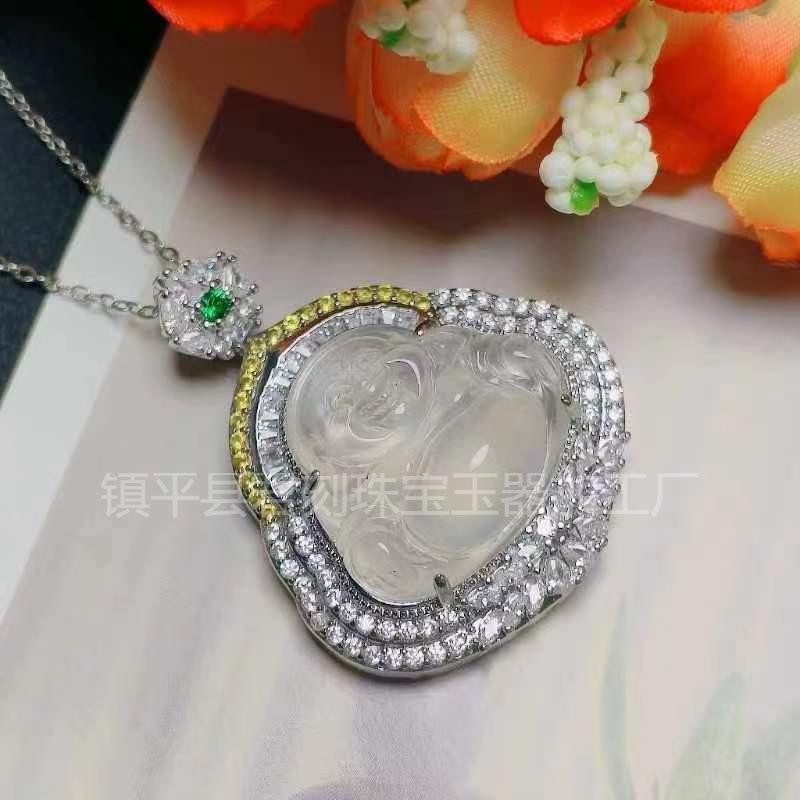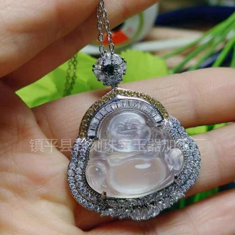 [Nombre del bebé] Buda de calcedonia de hielo alto con incrustaciones plateadas