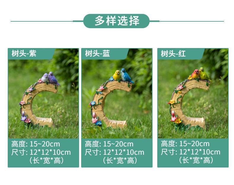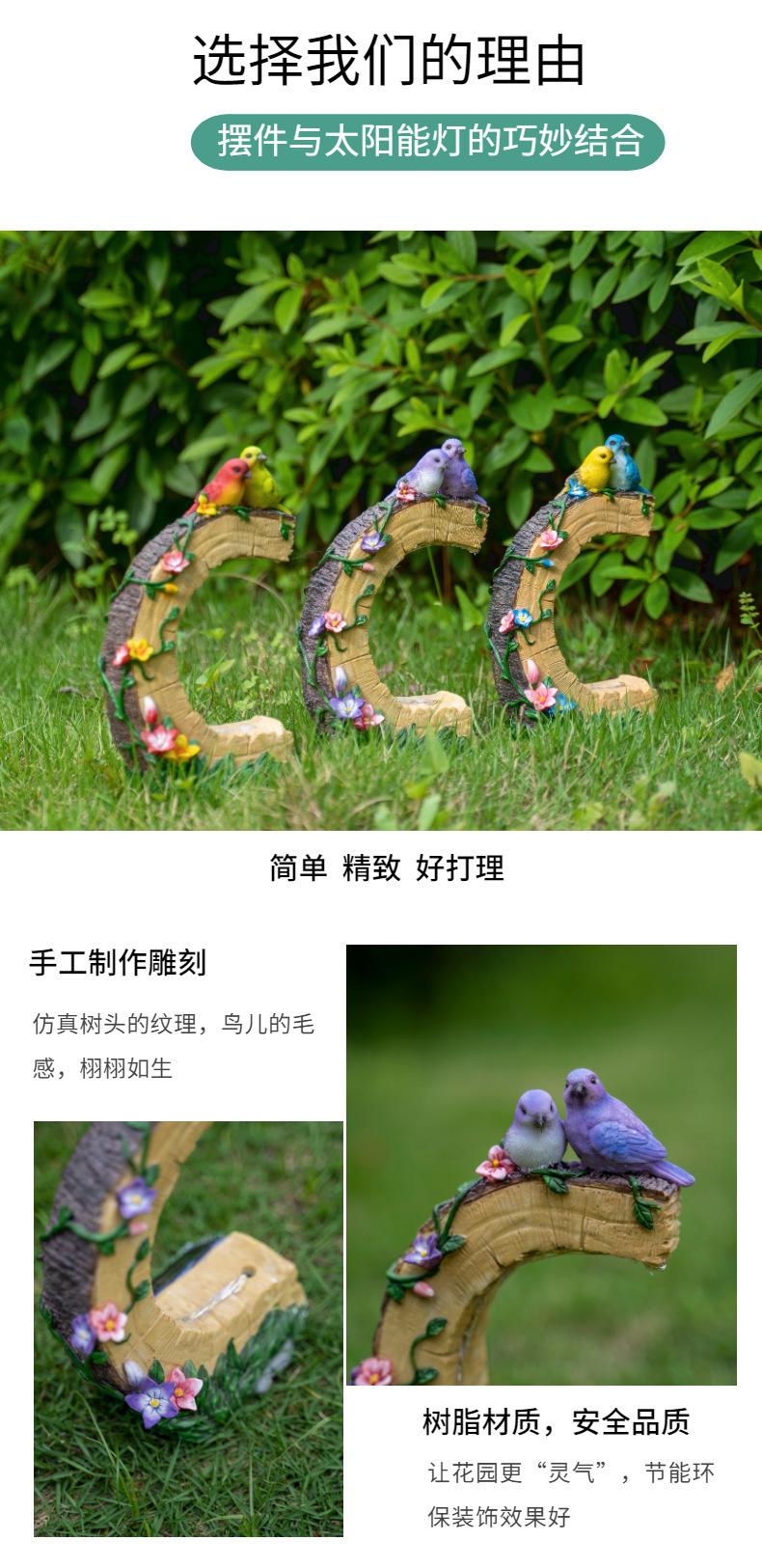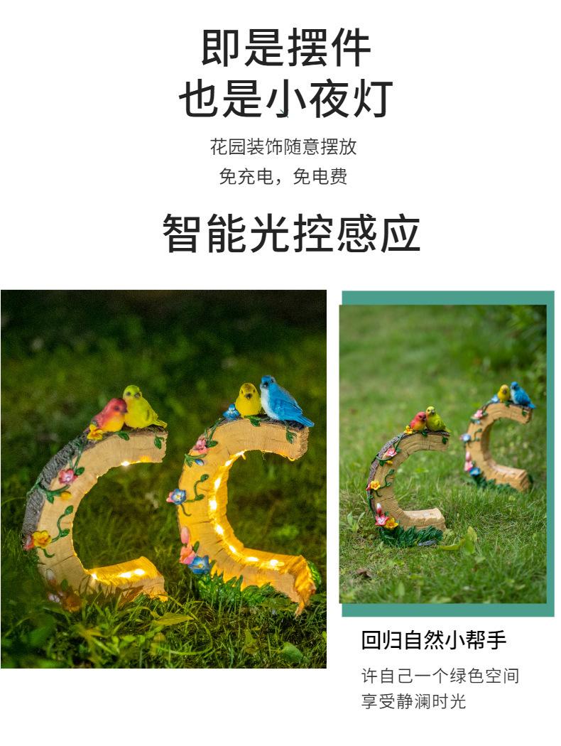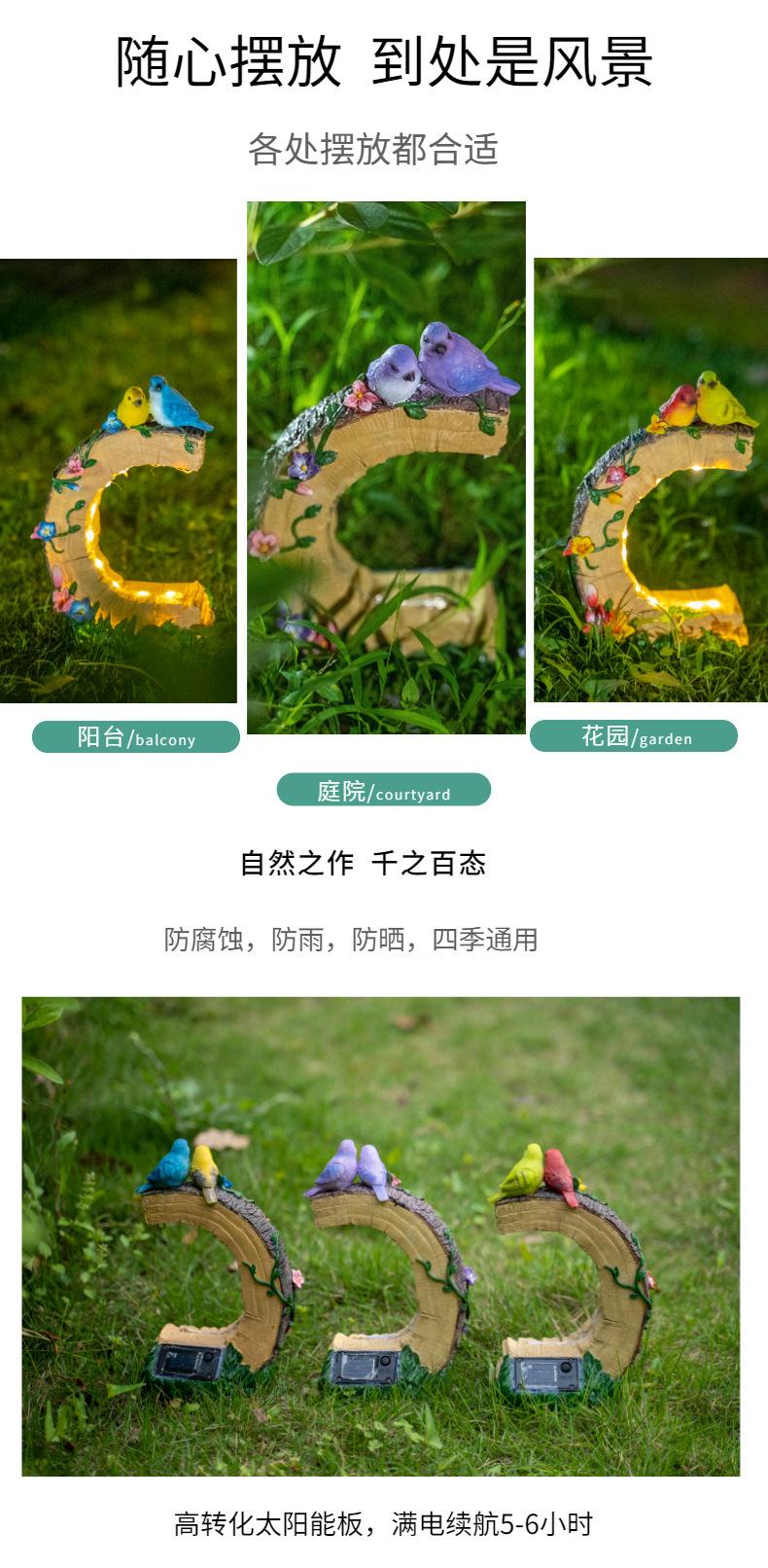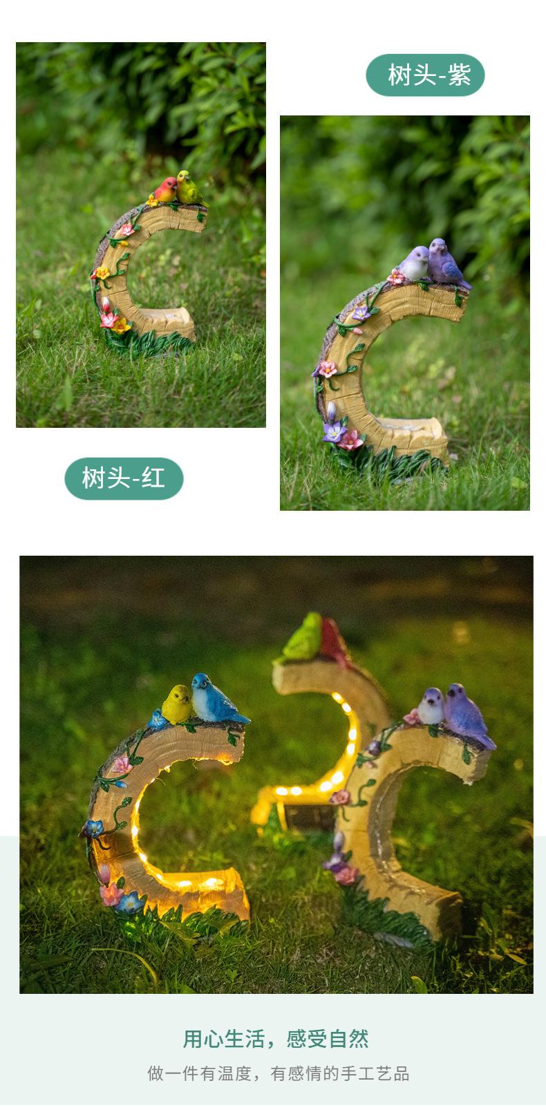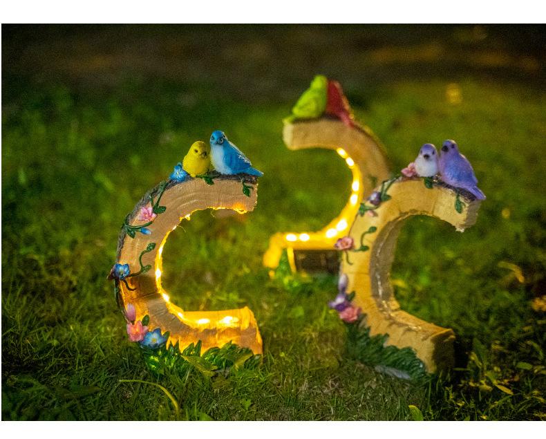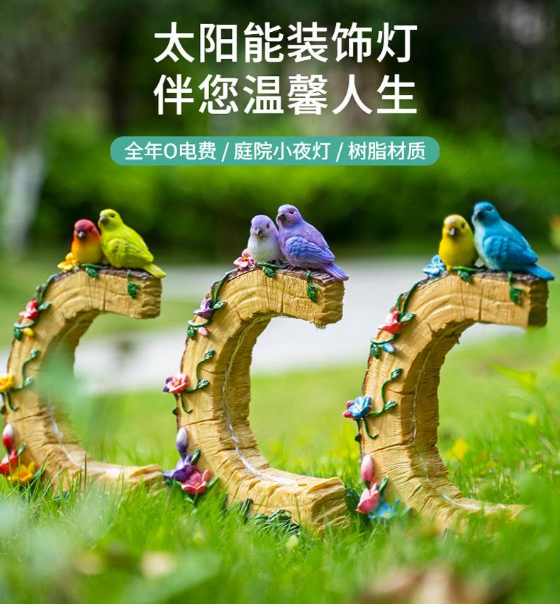 Venta al por mayor transfronteriza Artesanías de resina para exteriores Pájaro Patio Luces solares Patio Jardín pastoral Adornos decorativos