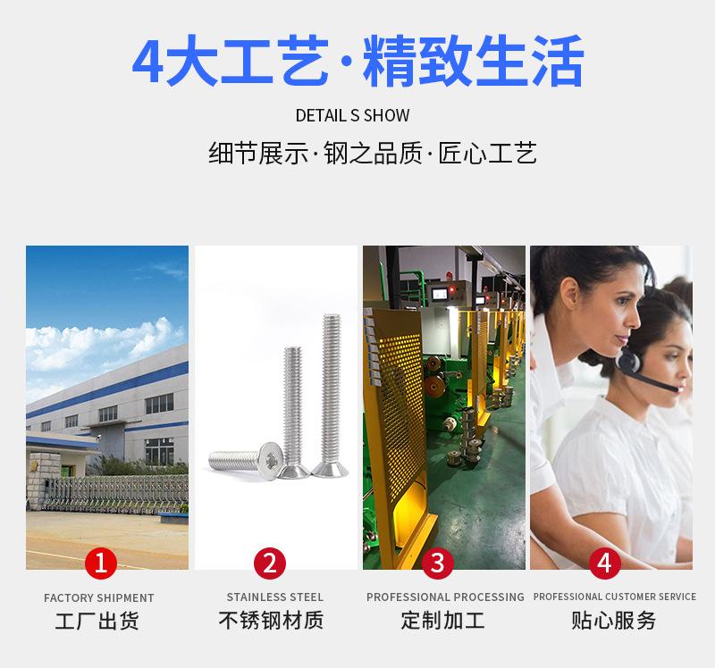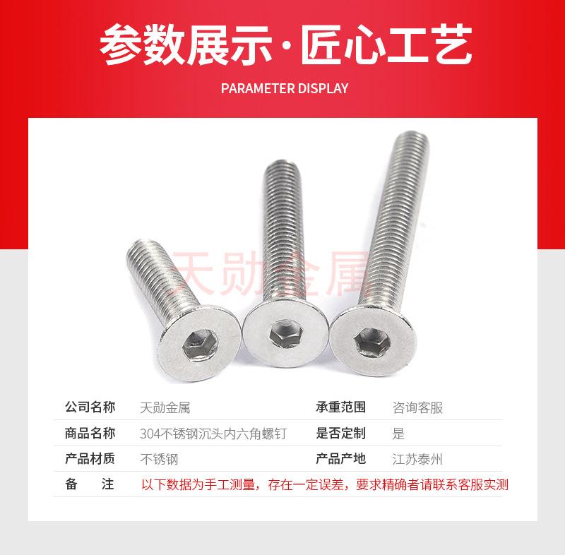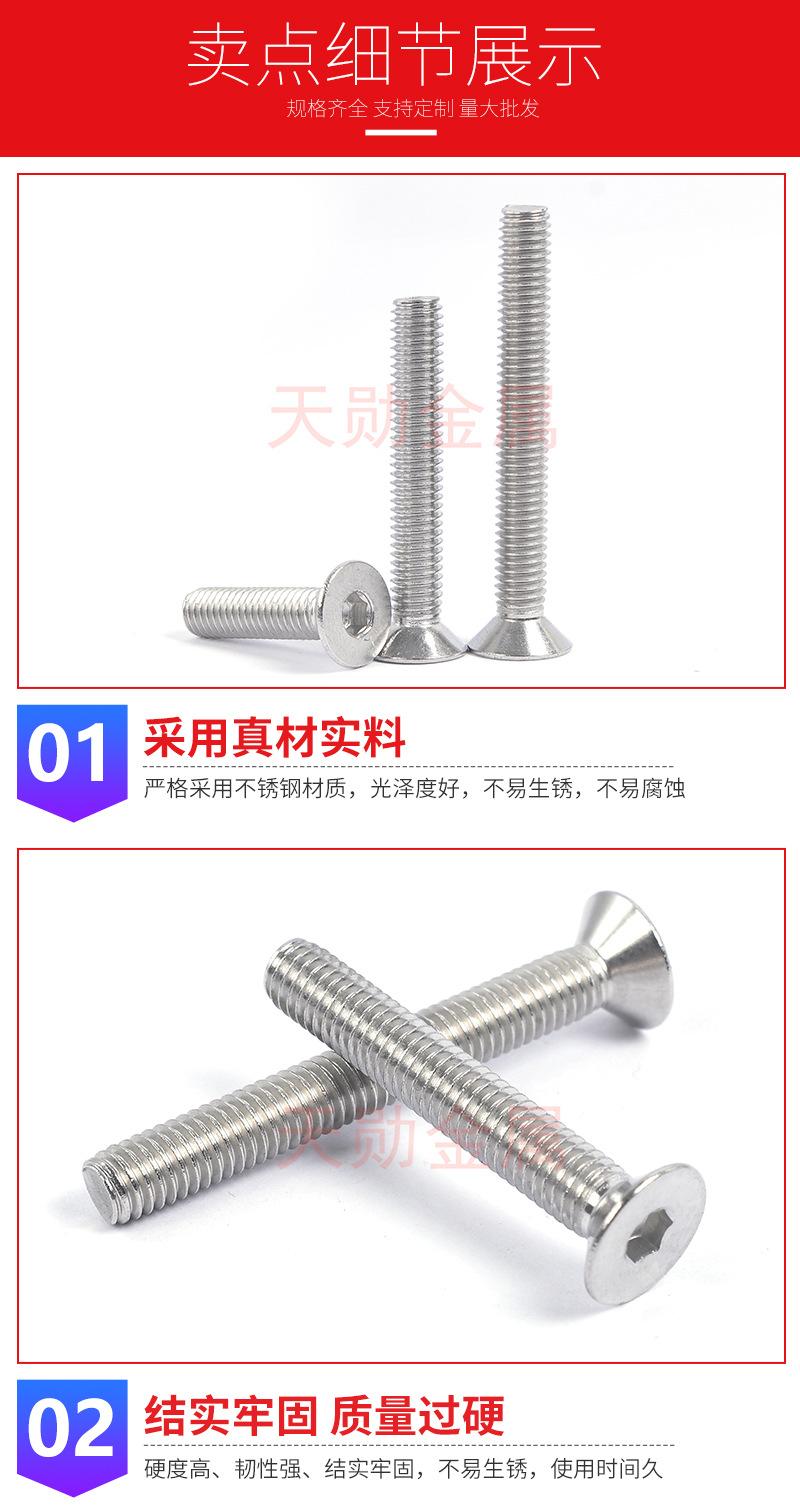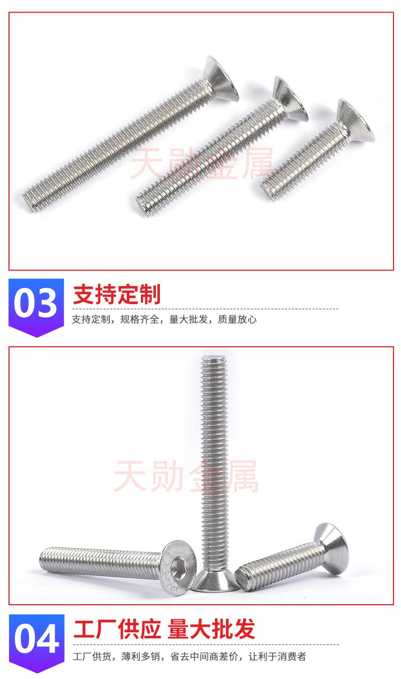 Tornillo hexagonal de cabeza avellanada de acero inoxidable 304 M3M4M5M6mm tornillo de cabeza plana 16/20/25/30-100