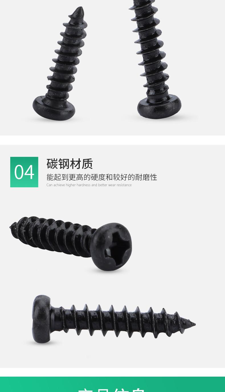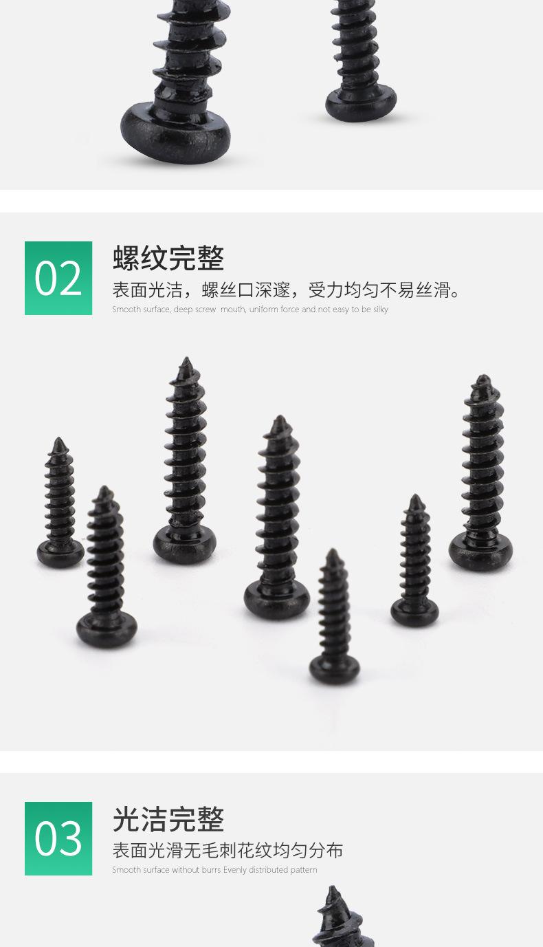 Tornillo de cabeza redonda negra cubierta M2/M3/M4/PA Phillips autorroscante cabeza plana autorroscante miniatura tornillo pequeño