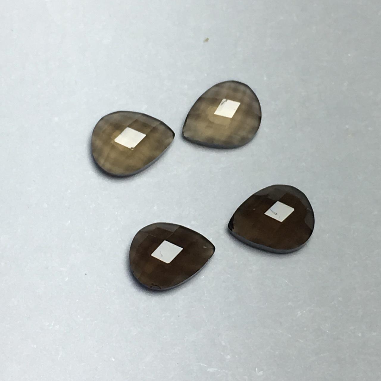 Joyería de cristal ahumado natural con superficie de tortuga plana en forma de pera de 4 x 5 con superficie de rejilla de cristal de té con piedra
