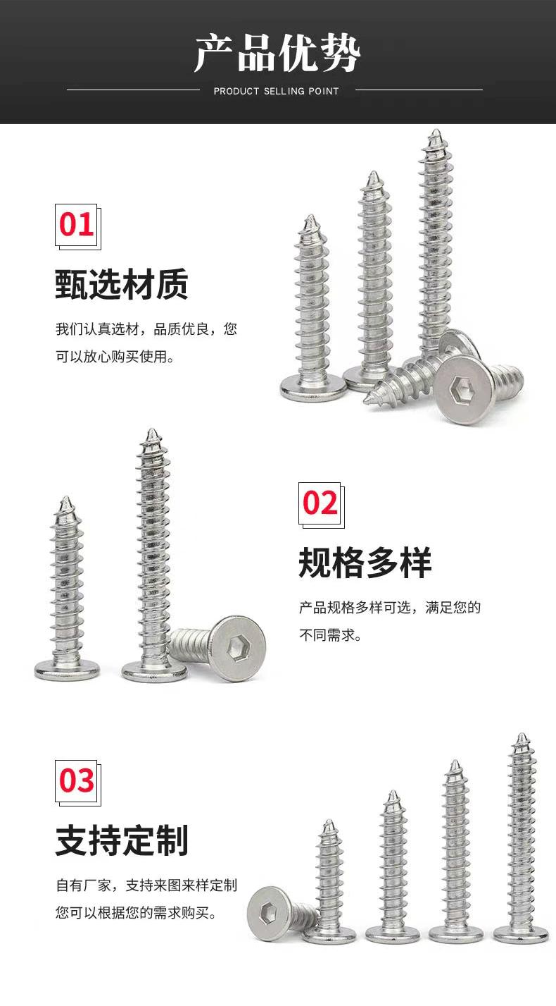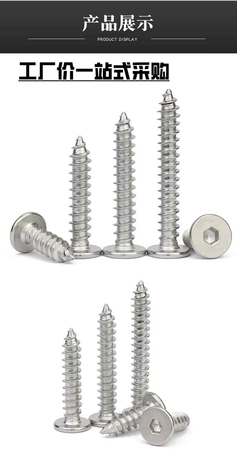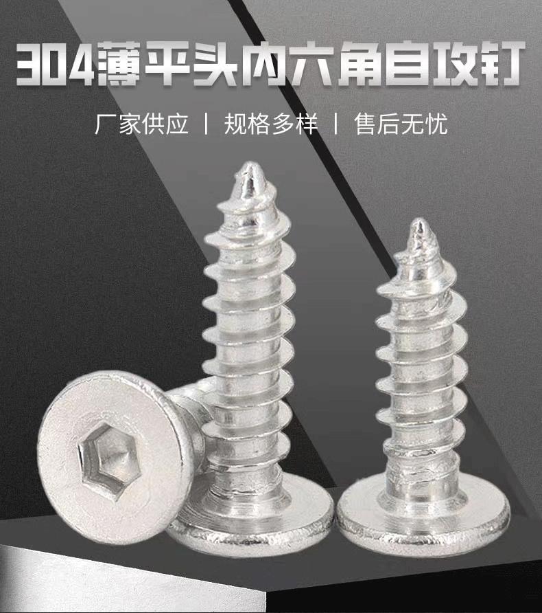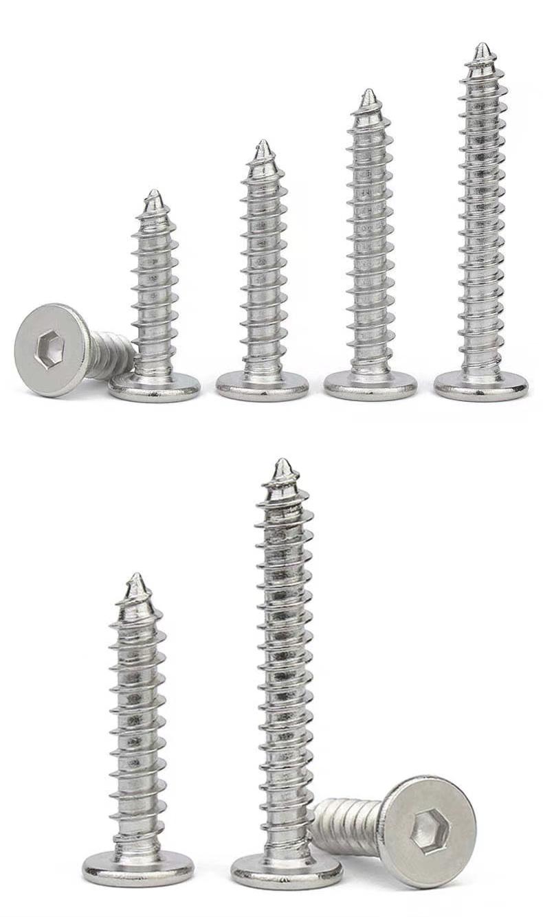 Tornillo de rosca de cabeza plana hexagonal de acero inoxidable 304, tornillo de rosca de cabeza plana grande ultrafino CA