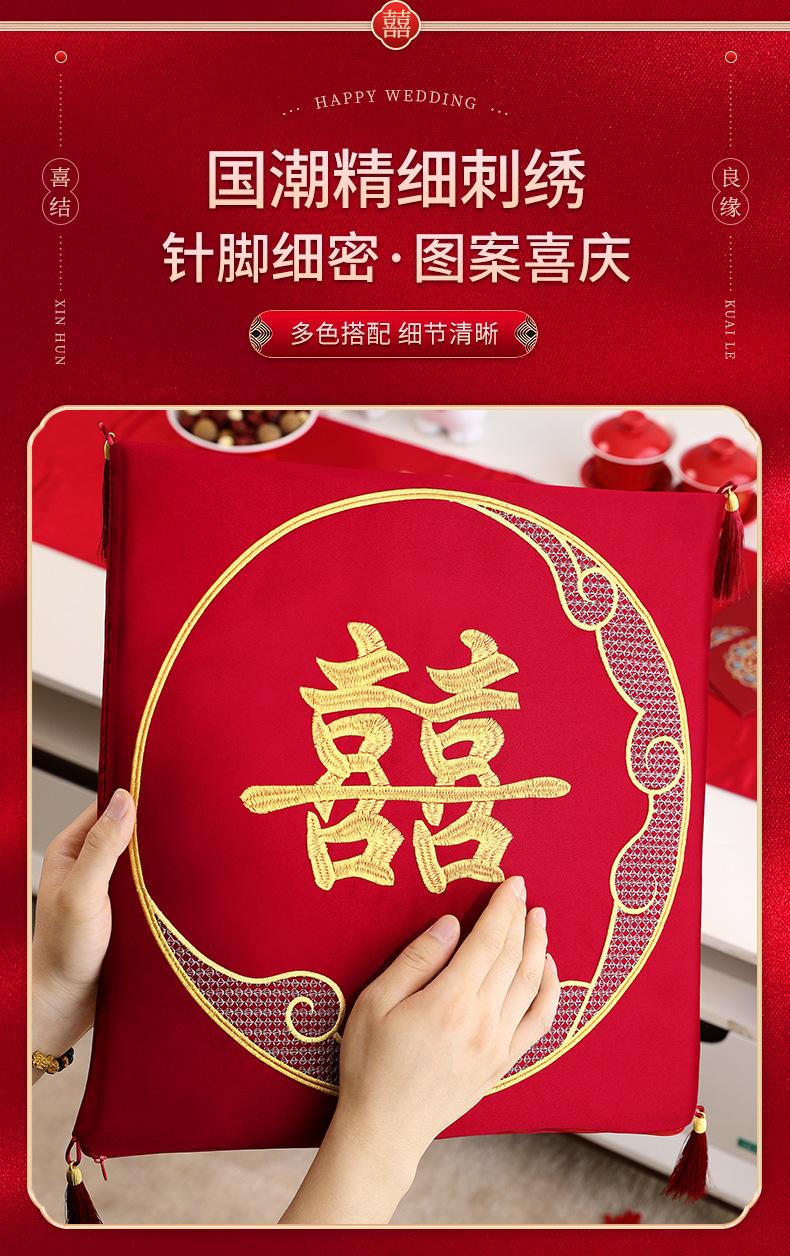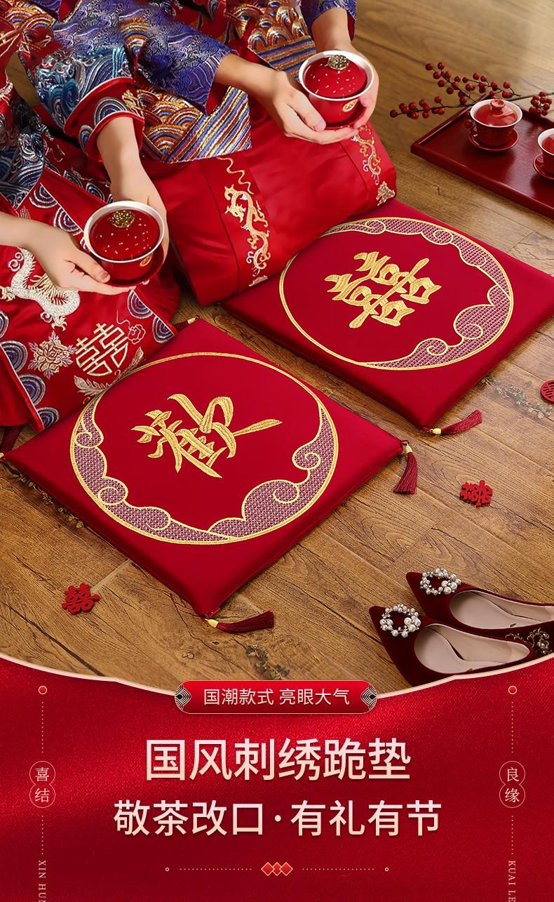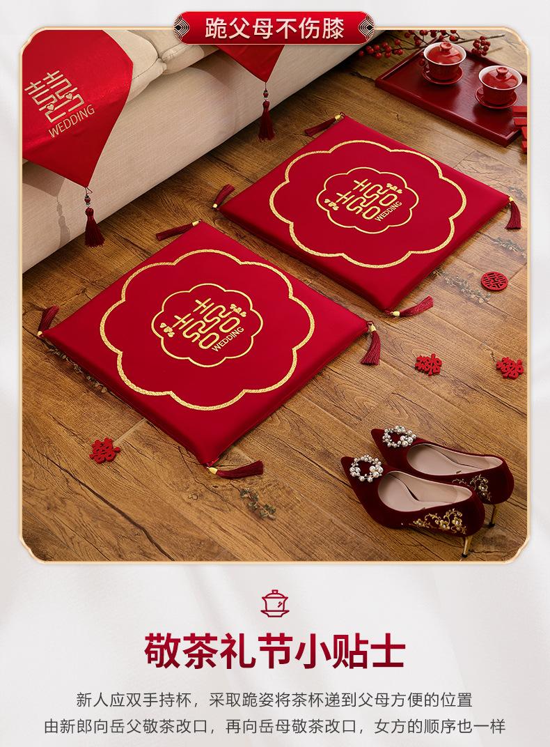 Alfombrilla para arrodillarse para boda de novio y novia, un par de alfombrillas felices engrosadas modificadas para té, saludo de boda, palabra feliz roja, alfombrilla para sentarse de bendición