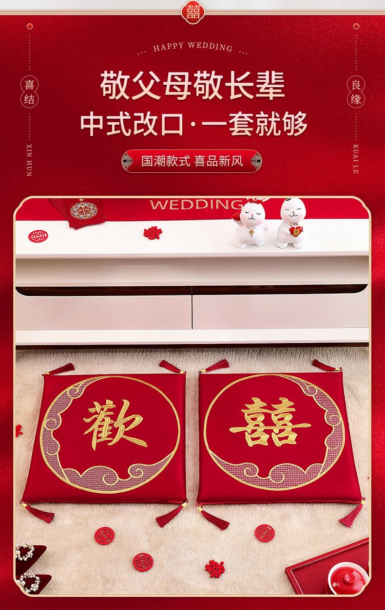 Compra Alfombrilla para arrodillarse para boda de novio y novia, un par de alfombrillas felices engrosadas modificadas para té, saludo de boda, palabra feliz roja, alfombrilla para sentarse de bendición al por mayor en Joom.pro