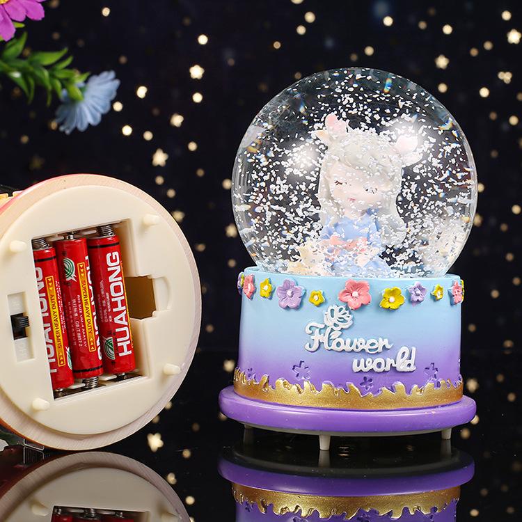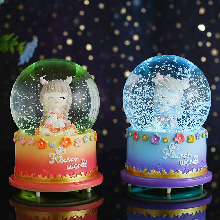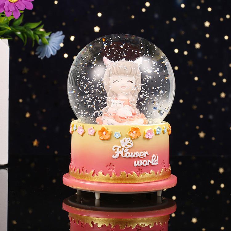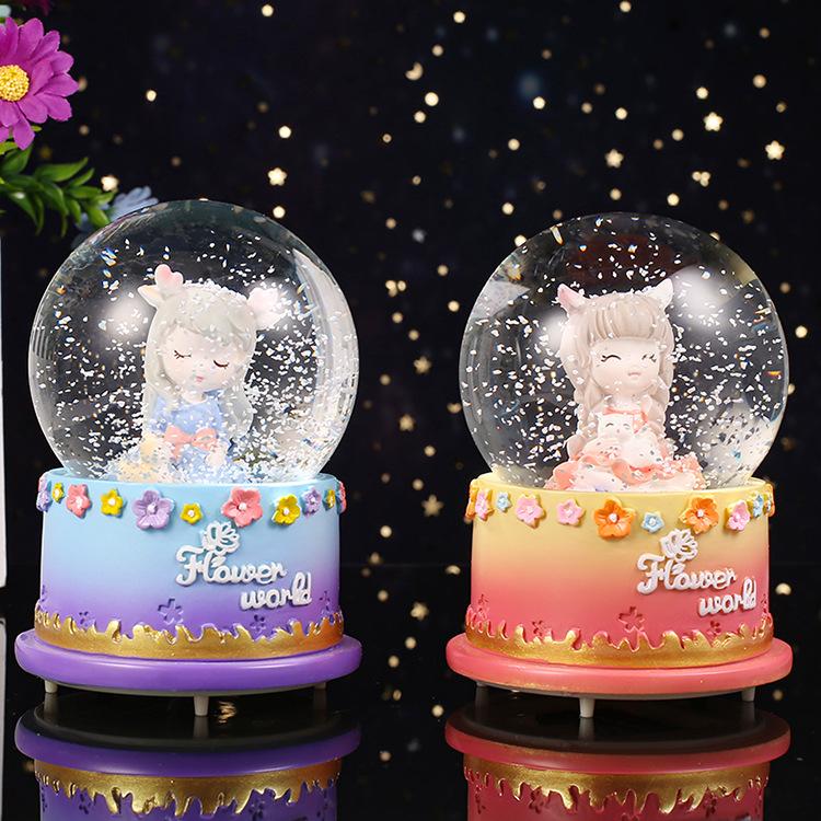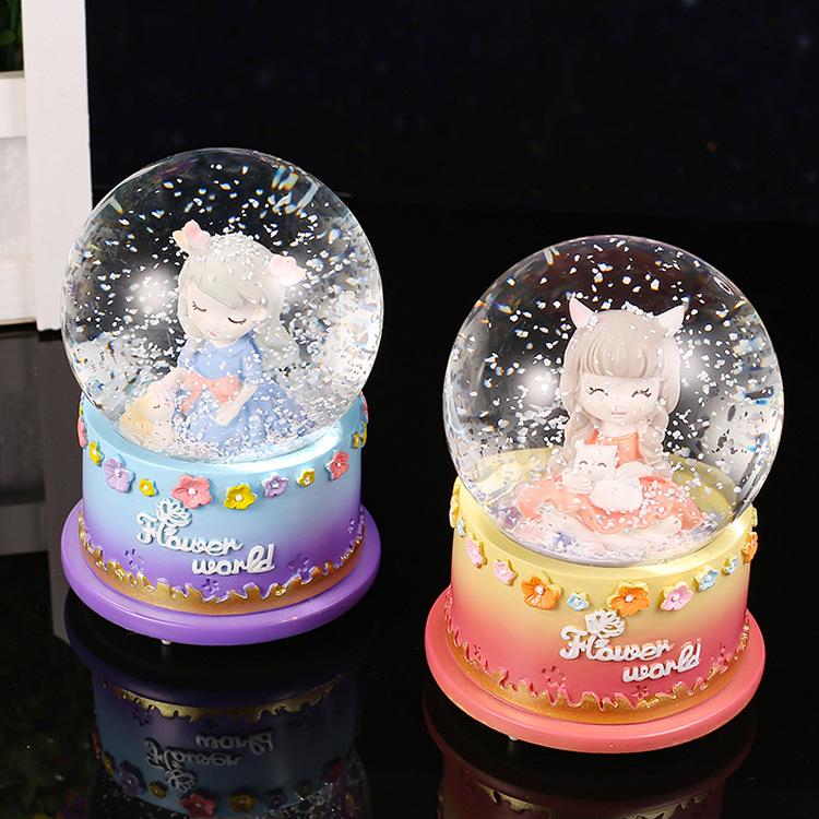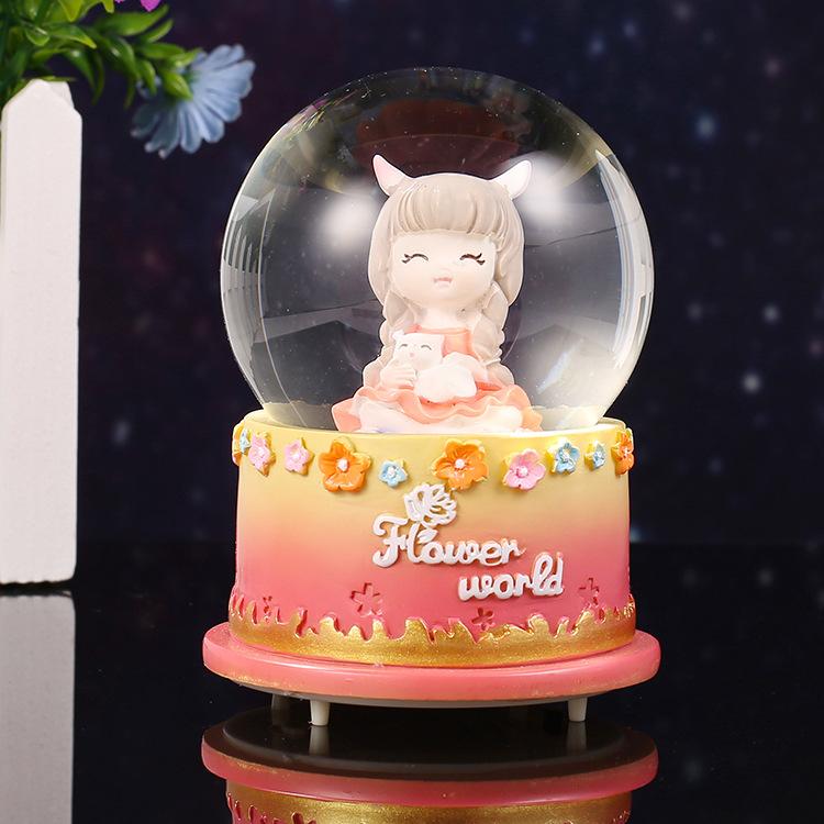 Caja de música creativa con degradado para niña, bola de cristal transparente, decoración de resina para escritorio de oficina, adornos, regalos