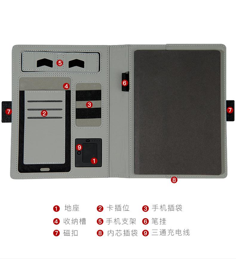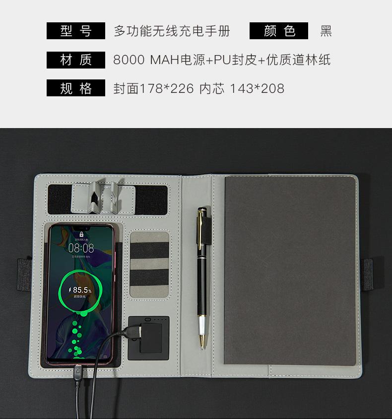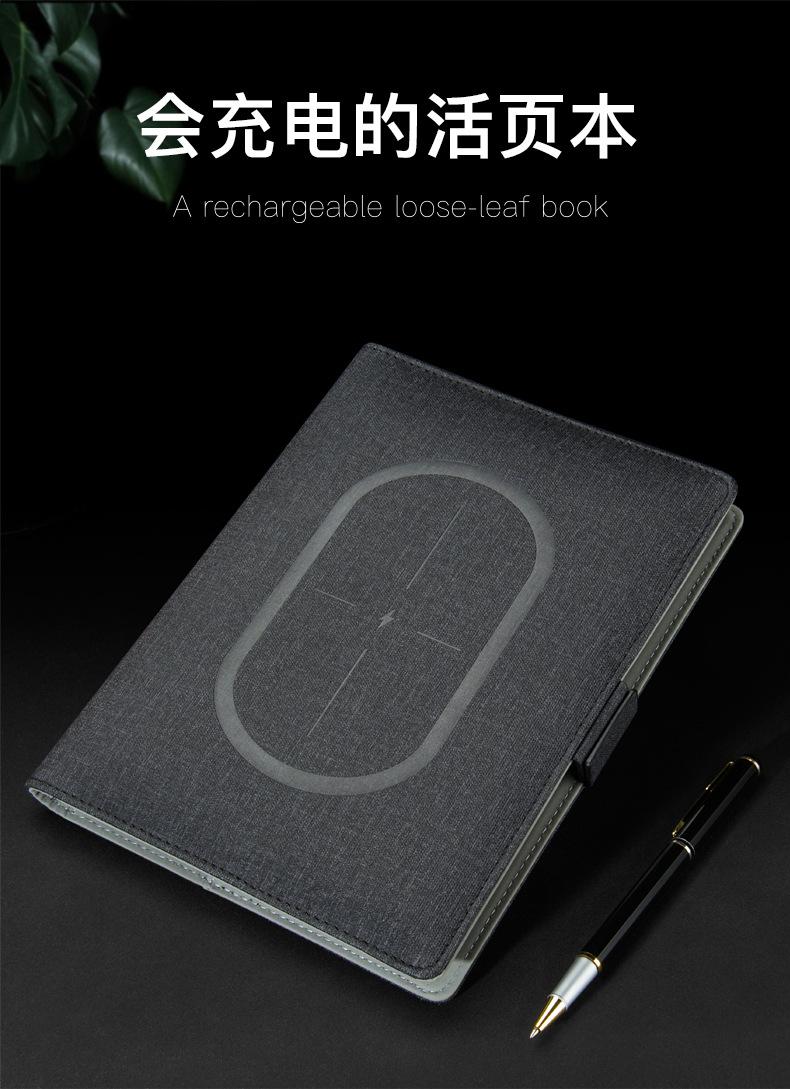 Cuaderno A5 de hojas sueltas con carga inalámbrica puntual, cuaderno con batería externa, regalo de negocios con LOGO