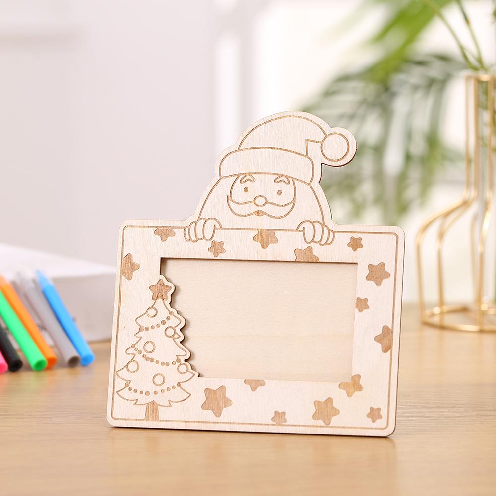 Marco de Fotos de Madera para Bebé Coloreable DIY Graffiti Mosaico Regalo Divertido para Niños Adornos Educativos Pluma de Acuarela