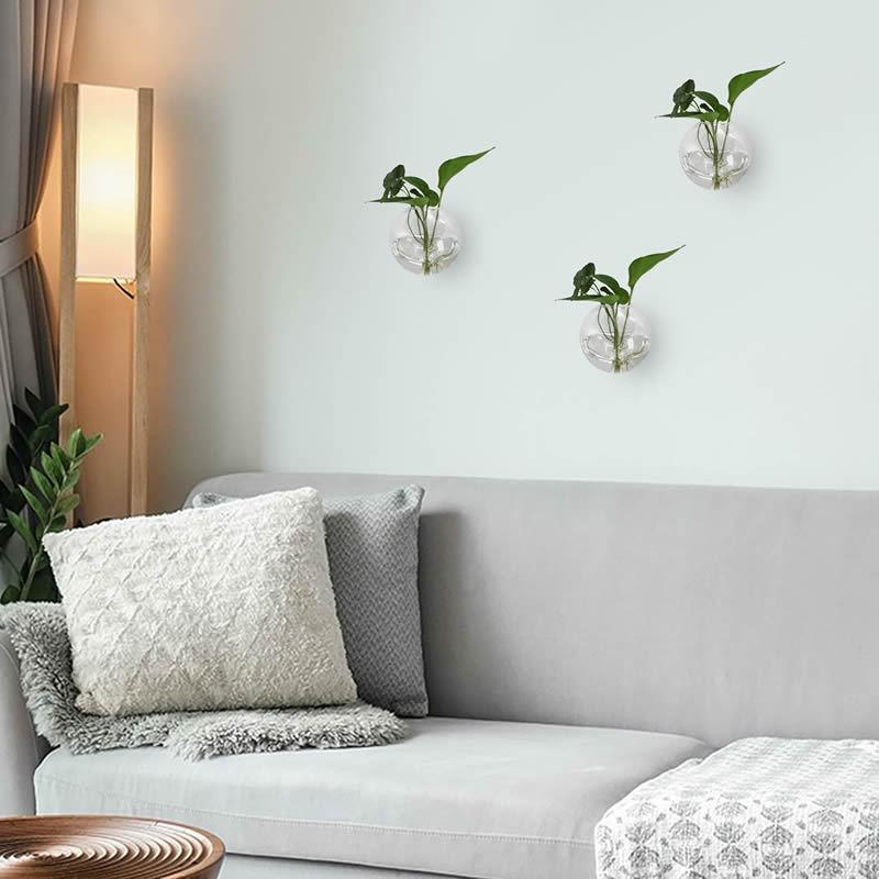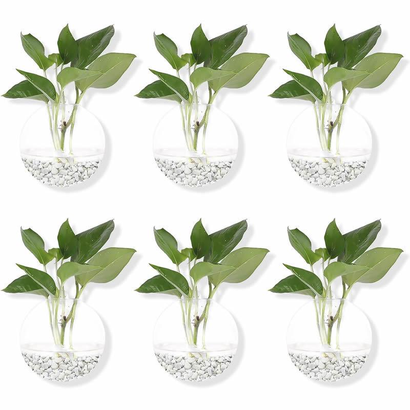 Jarrón hidropónico transparente redondo para colgar en la pared, paquete de 6, creativo, de cristal, para decoración del hogar