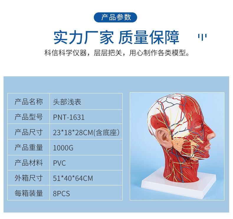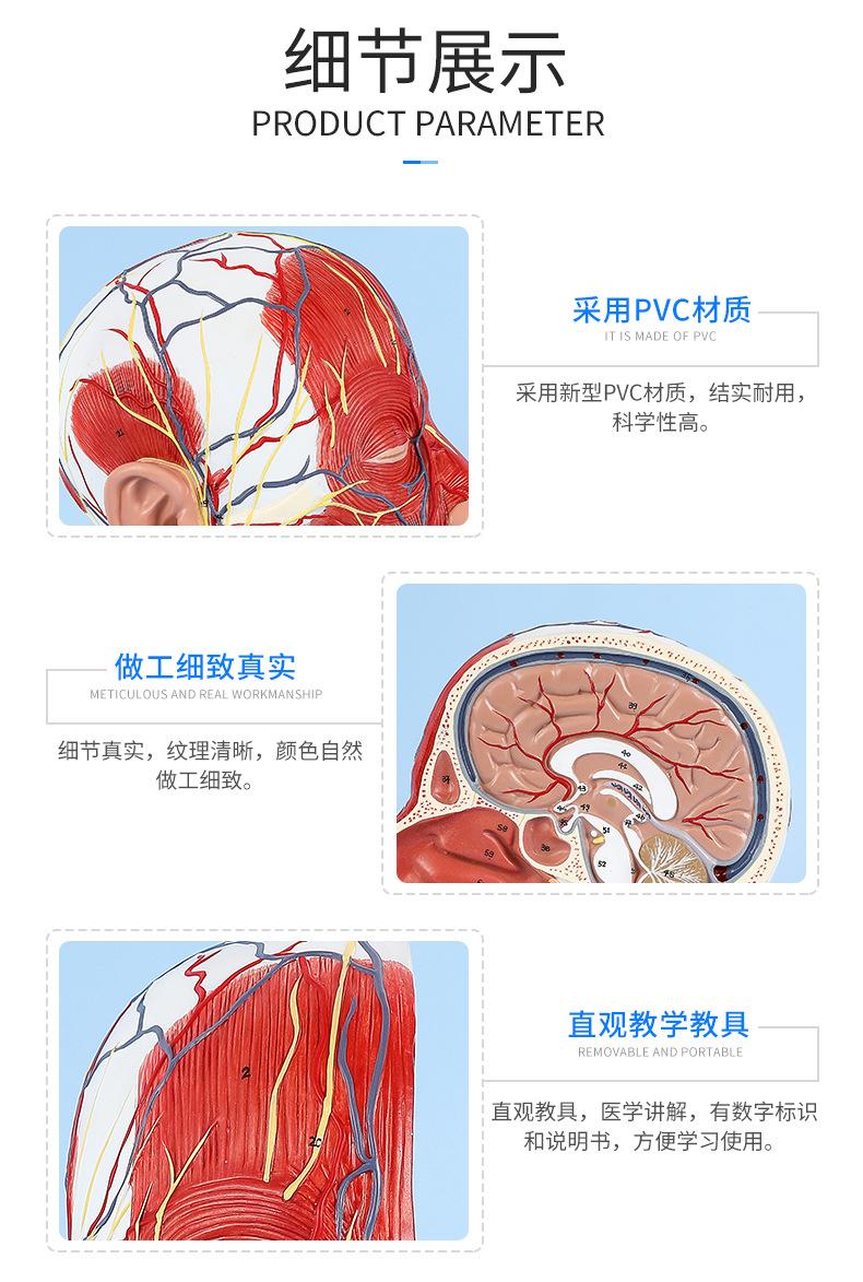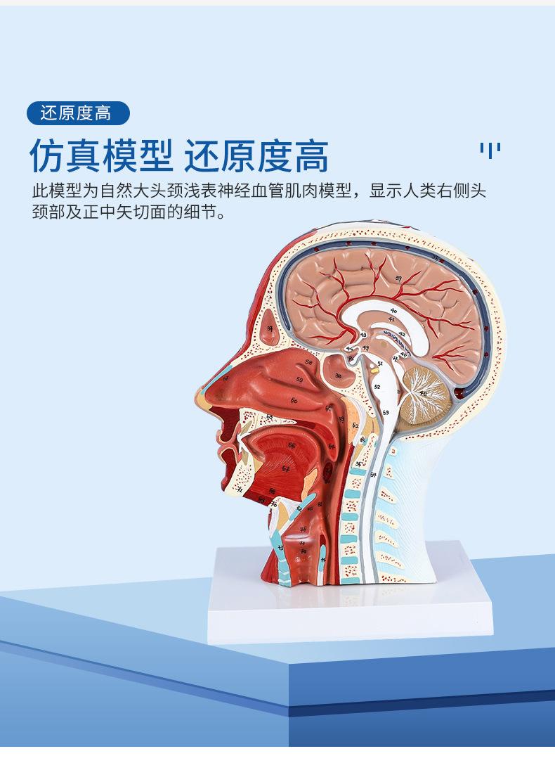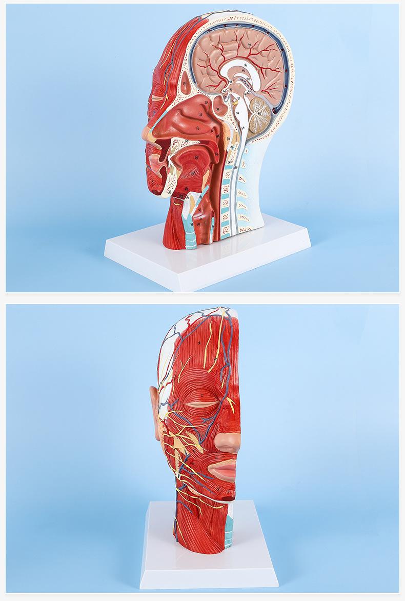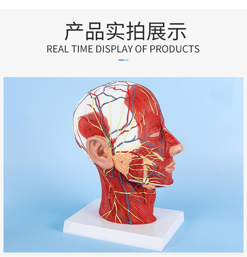 Modelo de simulación didáctica del nervio superficial de la cabeza y de los vasos sanguíneos, muestra del nervio cerebrovascular de la cabeza, estructura del músculo facial |