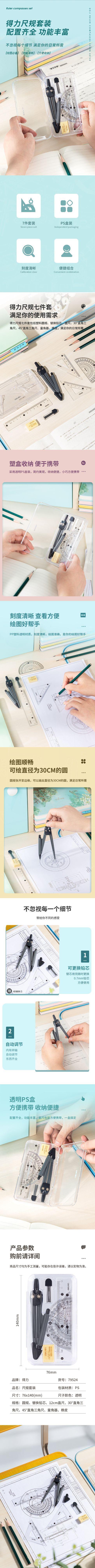 Compra Juego de compases Deli 79524 para estudiantes con regla de dibujo para examen, regla triangular, transportador y compases en caja, juego de 7 piezas al por mayor en Joom.pro