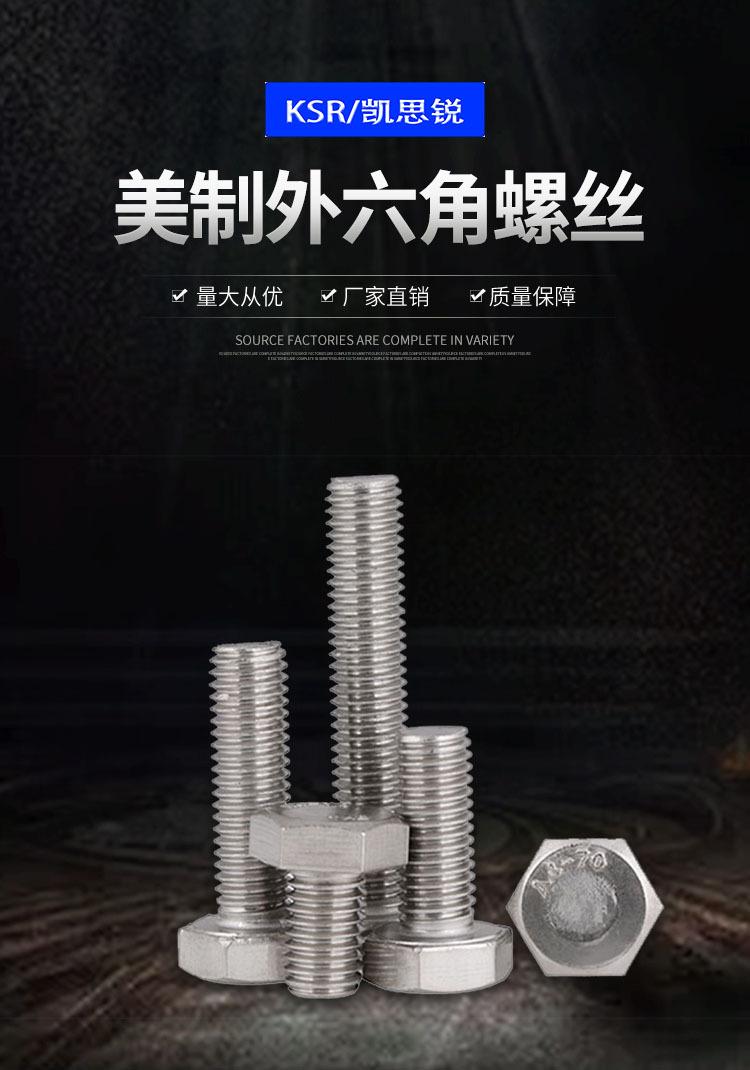 Tornillo hexagonal externo de acero inoxidable 304 de EE. UU. UNC en pulgadas, tornillo de cabeza hexagonal de 1/4, 5/16, 3/8 y 1/2
