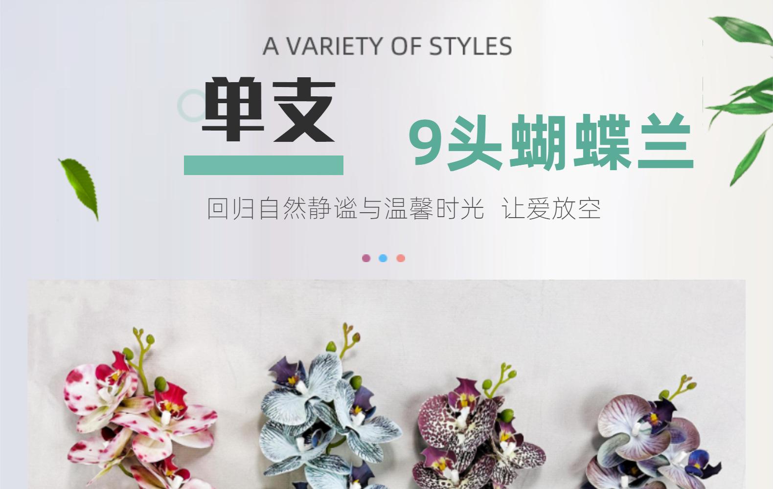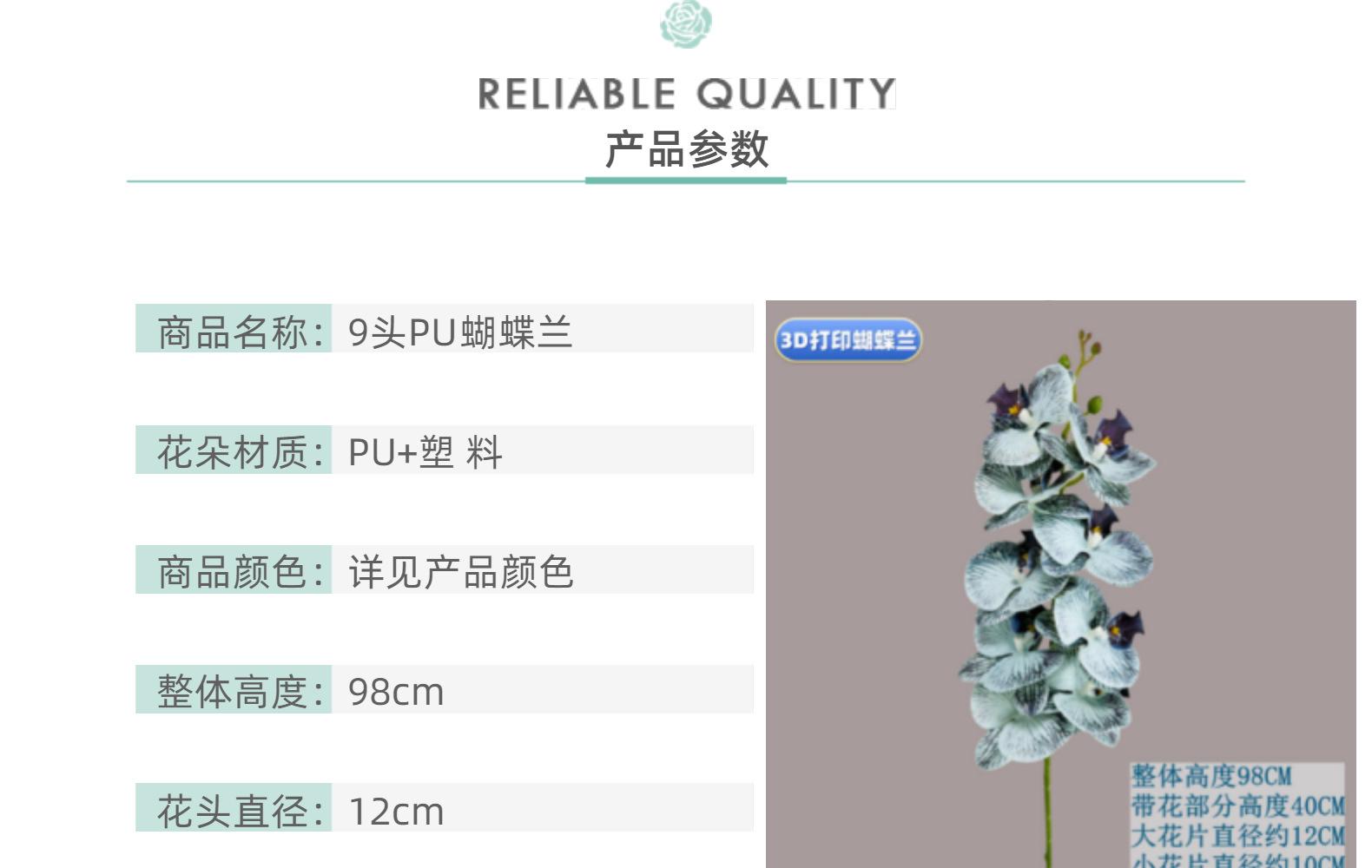 Simulación de flores para el hogar, boda, decoración de alta gama, impresión de arreglos florales de orquídeas, simulación de 9 cabezas, accesorios de Phalaenopsis, flores falsas al por mayor