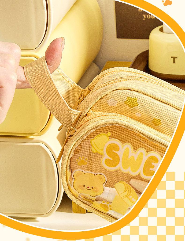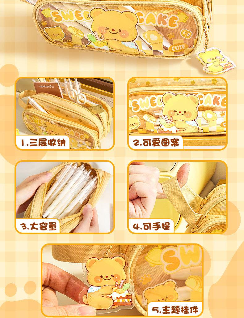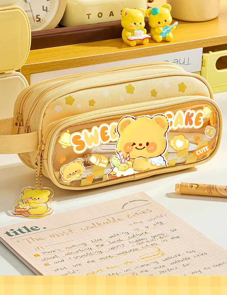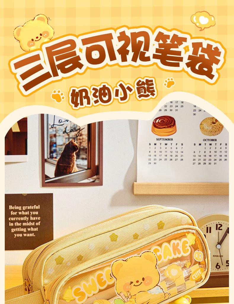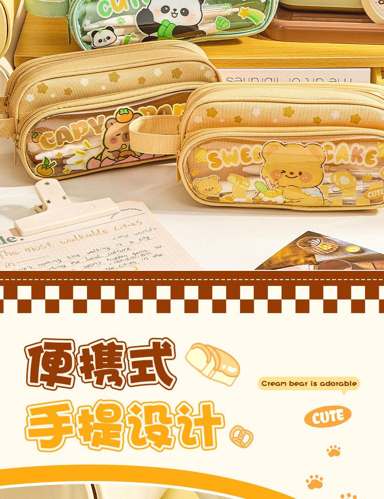 Hand-carrying double-layer visual pencil case [bear has a bamboo]