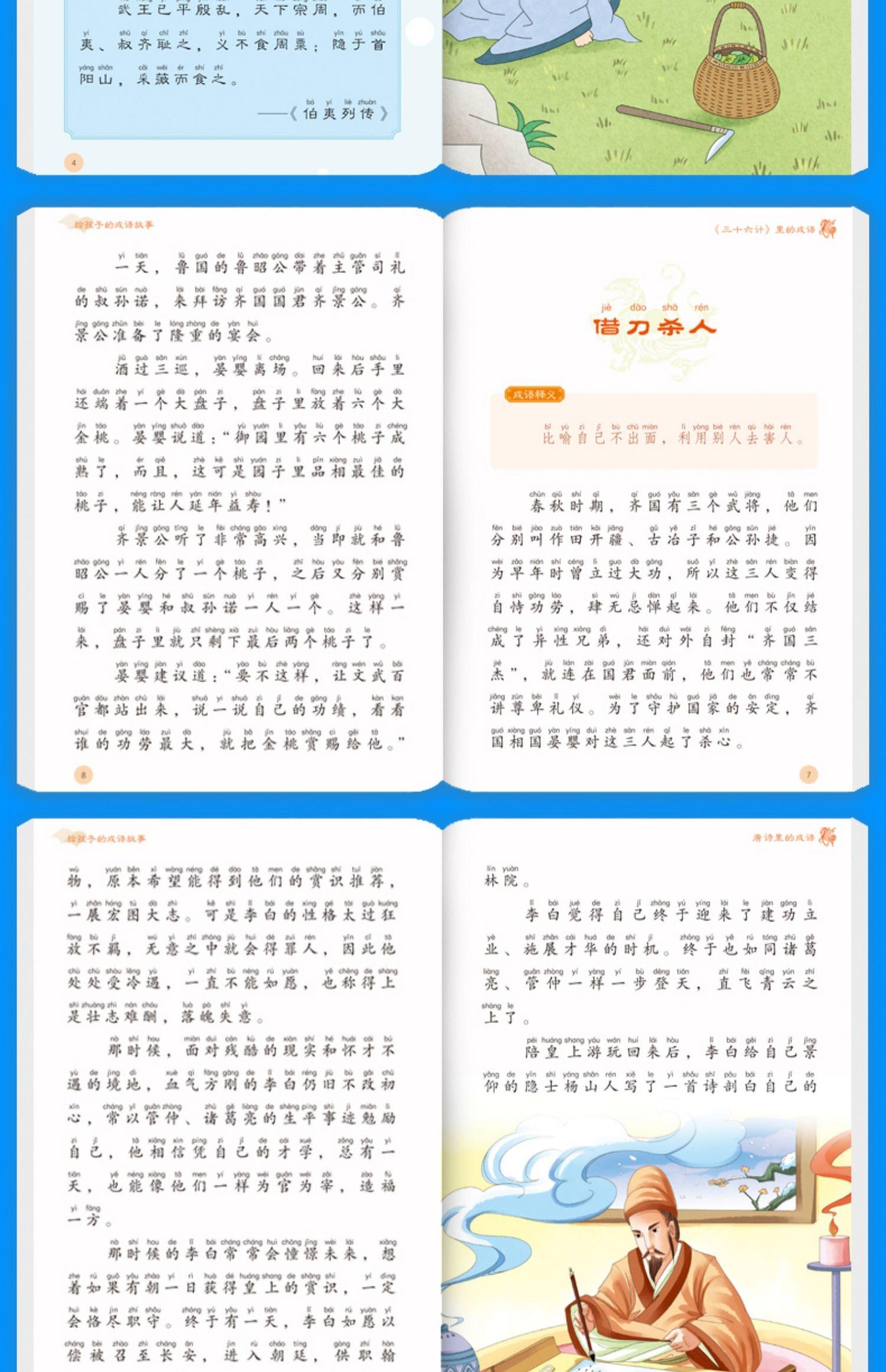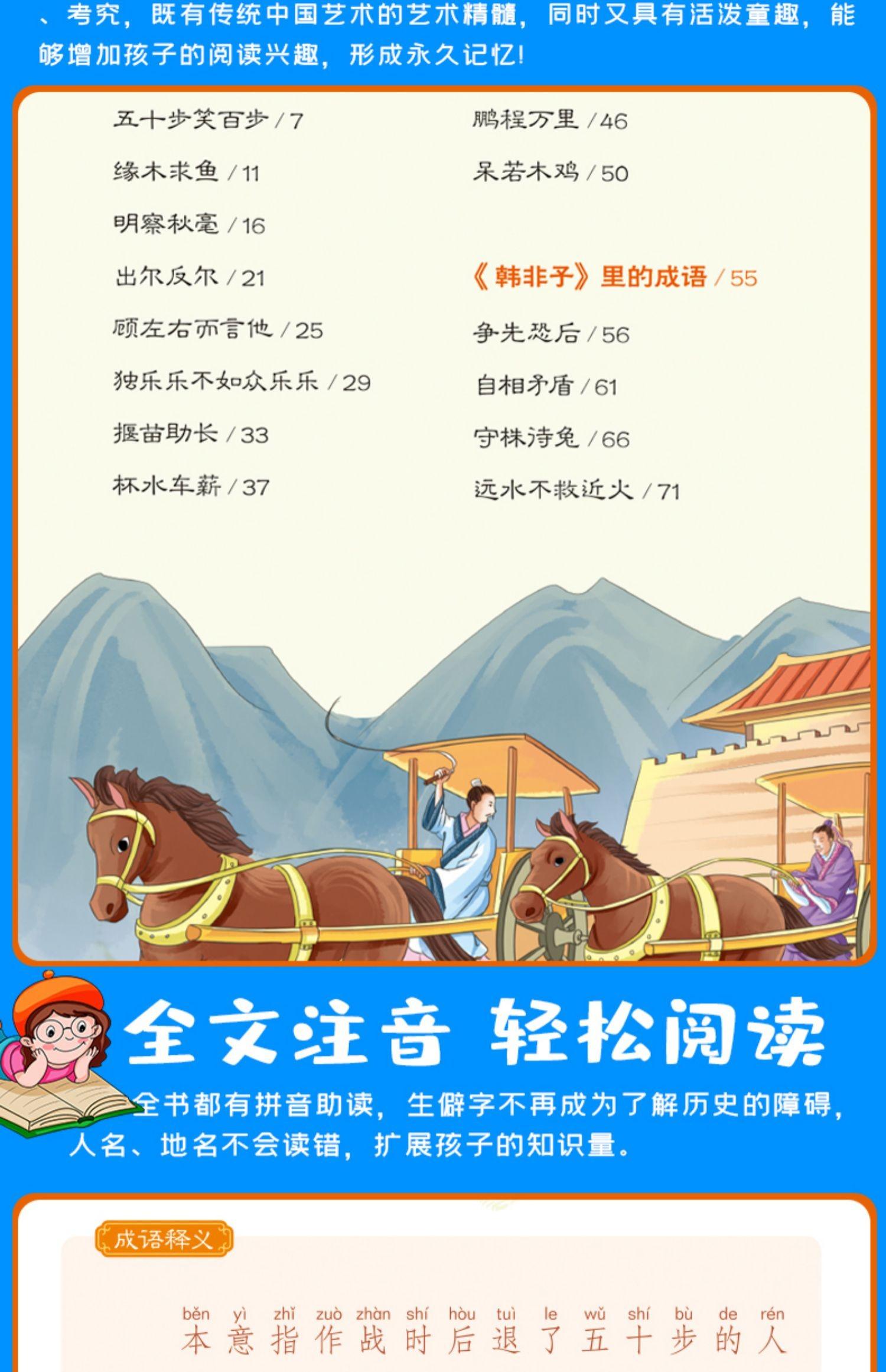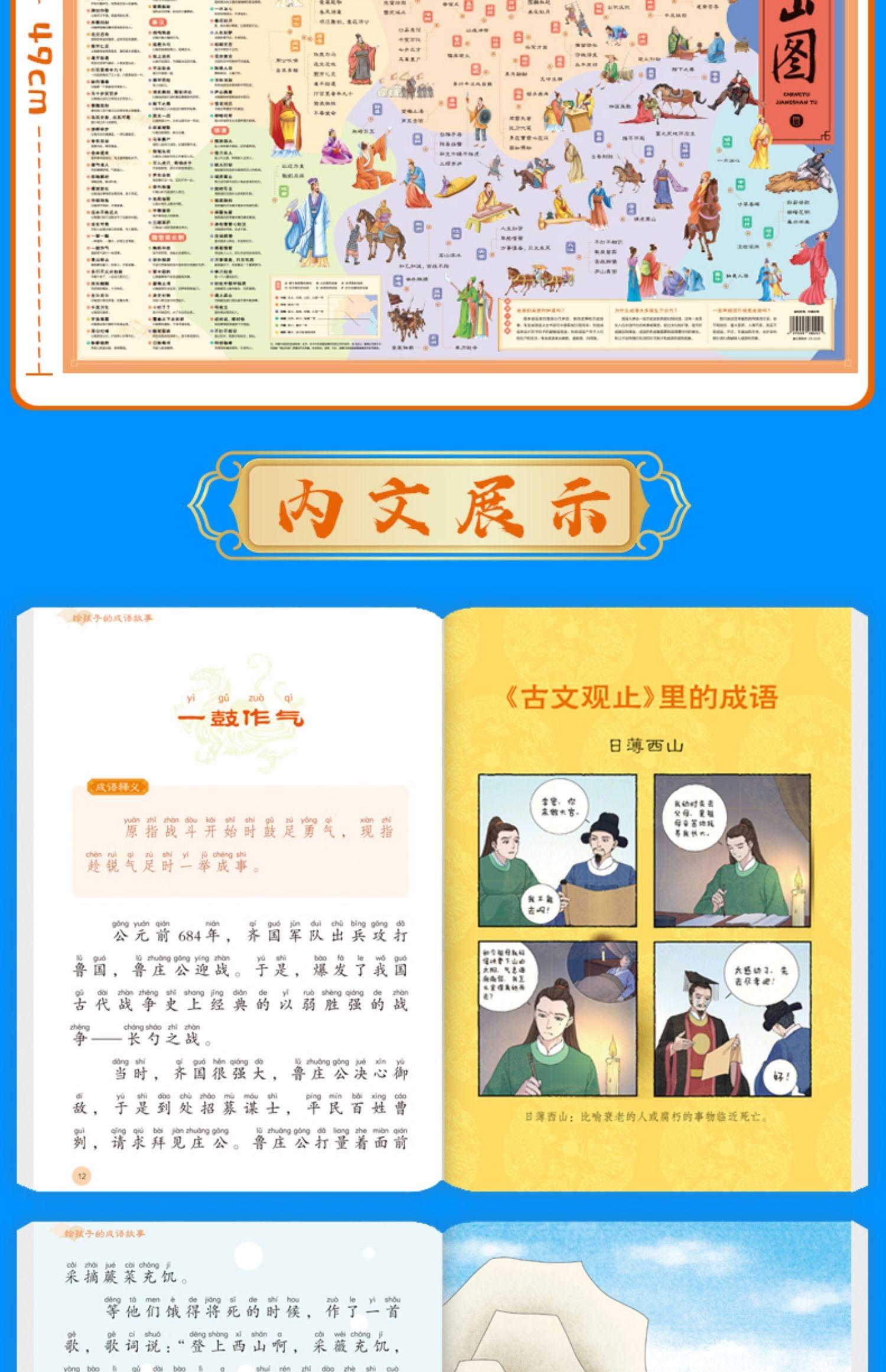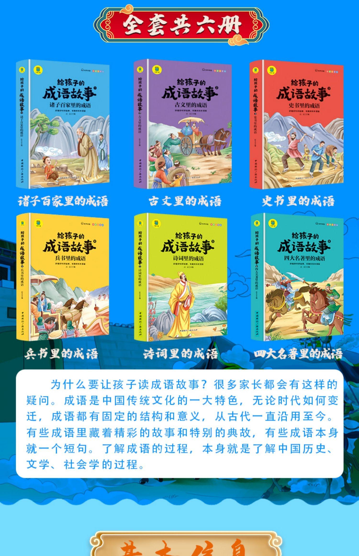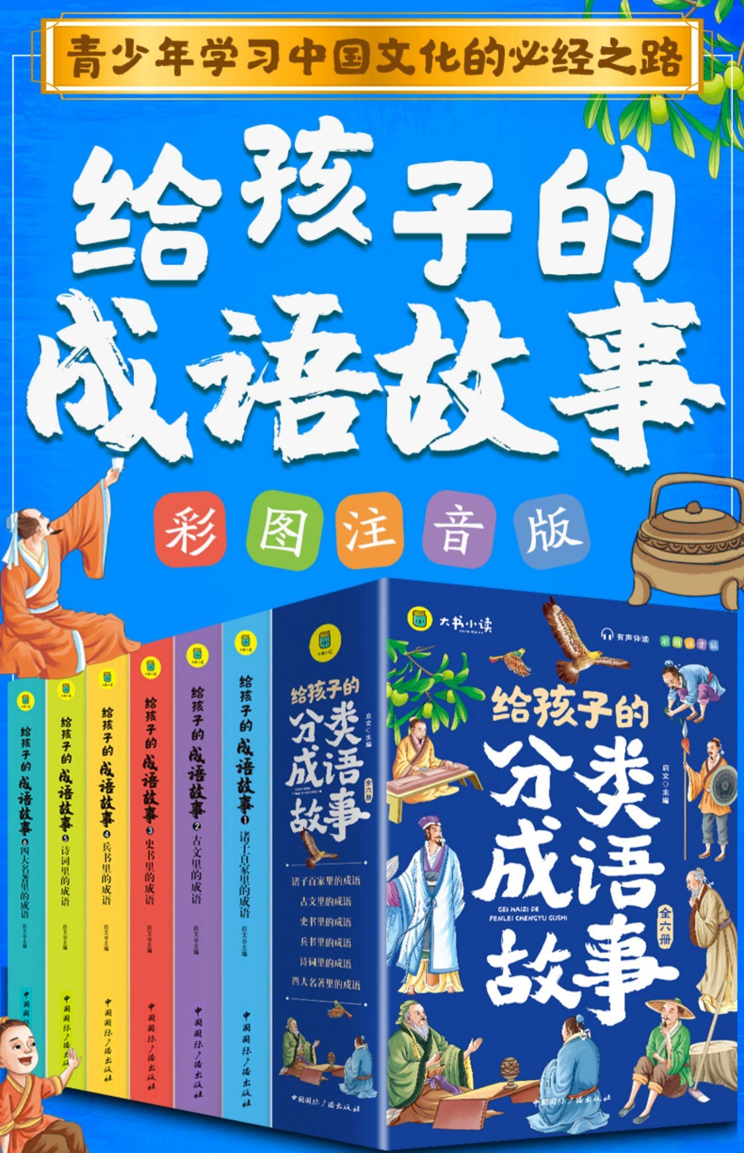 Un conjunto completo de modismos e historias clasificados para niños, 6 volúmenes de versión audiovisual pintada, lectura audiovisual de cientos de historia literaria antigua