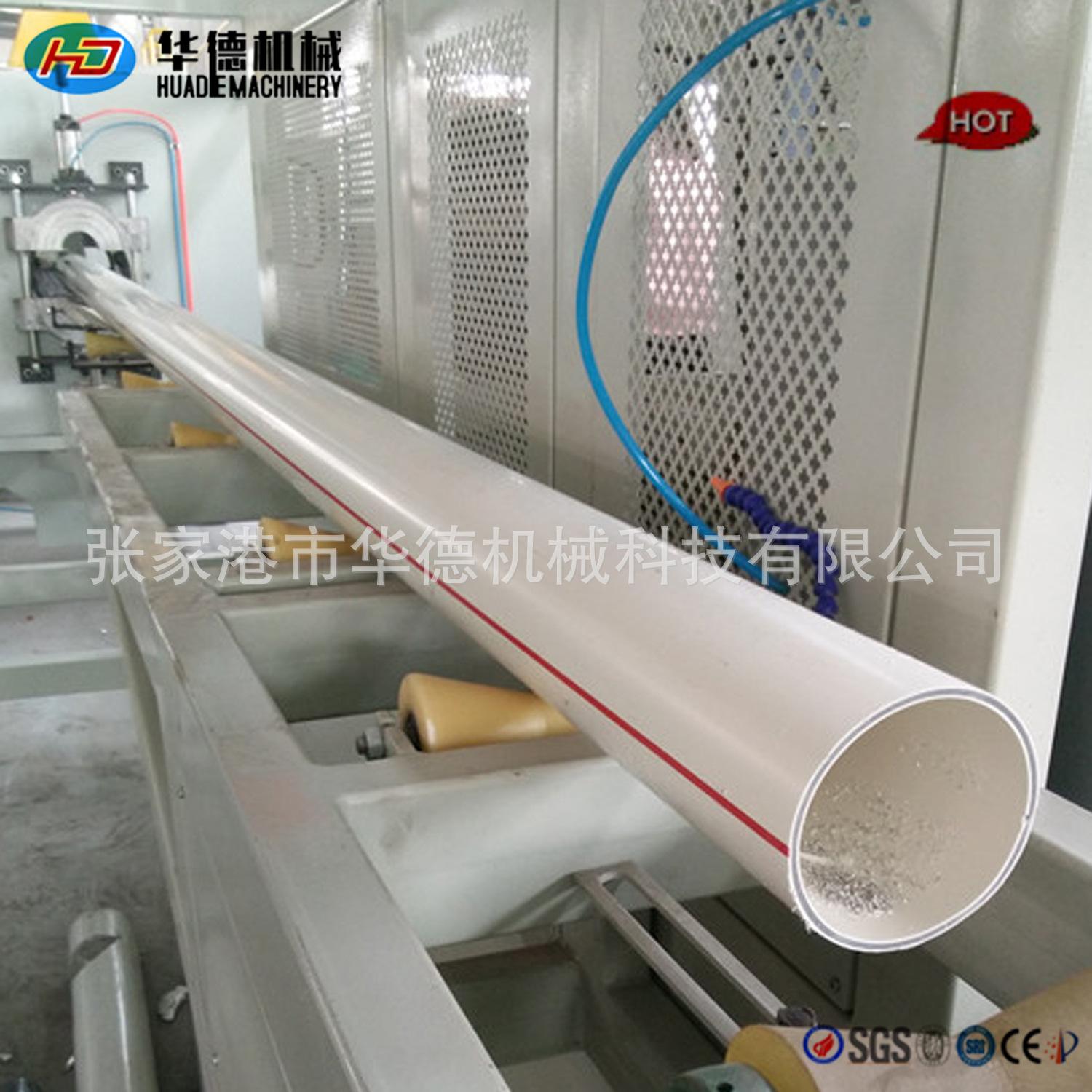 La línea de producción de tubería de PVC de tres capas adopta tecnología de coextrusión múltiple, utilizando extrusoras SJZ65 y SJZ51 para extruir una tubería de PVC. La tubería de PVC se divide en tres capas. Las capas interna y externa se extruyen con la misma extrusora, y la capa intermedia se extruye con otra extrusora. La línea de producción incluye extrusoras 65, 51, alimentadores, dados de extrusión, cajas de vacío, jaladores, cortadoras y estantes apiladores. Puede realizar alimentación automática, producción por extrusión, jalado y corte a longitud fija.