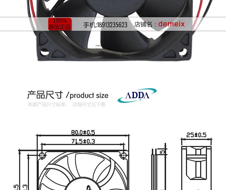 Ventilador de refrigeración ADDA Xixi AD08024US257000 8025 DC24V 0,20A, producto original genuino