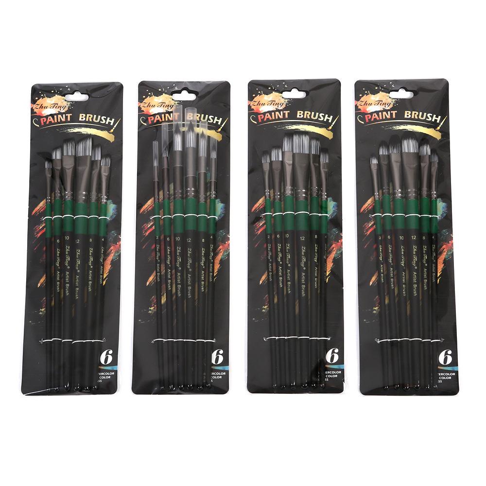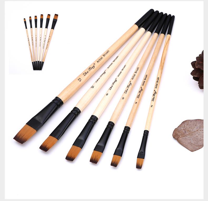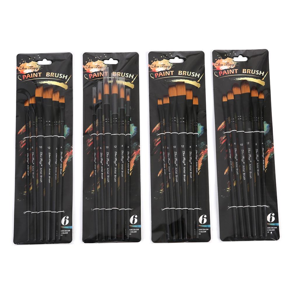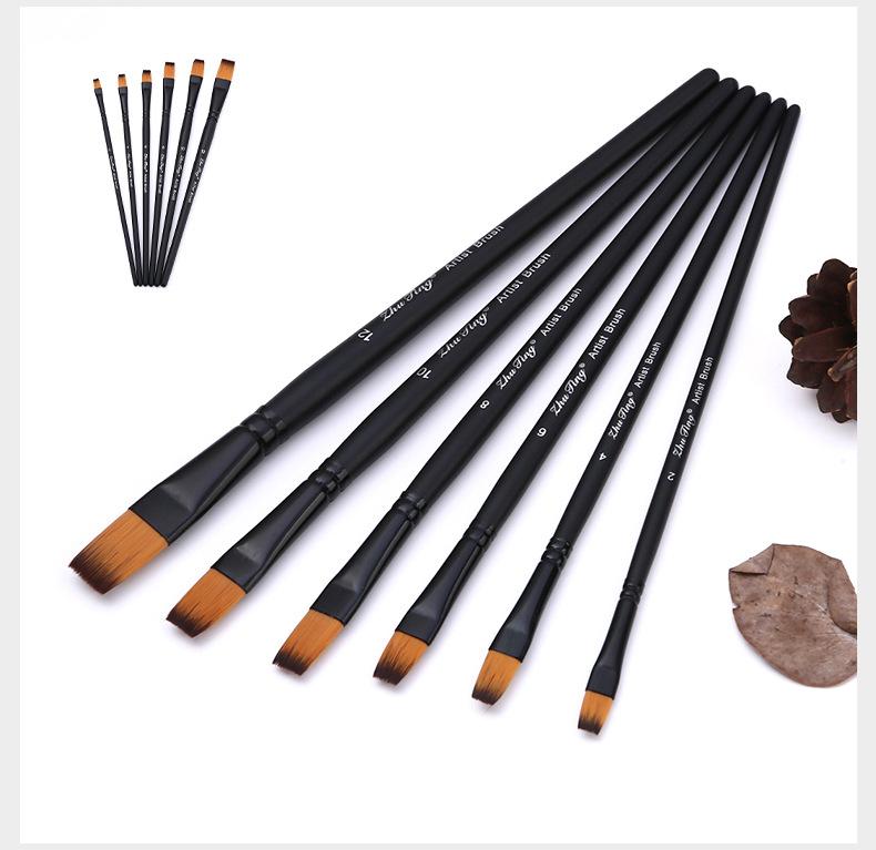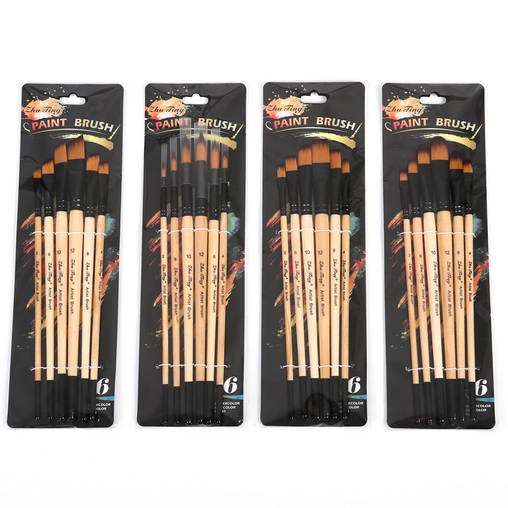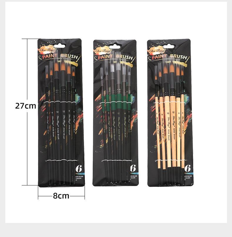 Pincel de lana de nailon de 6 piezas transfronterizo para estudiantes de arte, pintura de bricolaje, pincel de acuarela, pincel de pintura acrílica al óleo, venta al por mayor