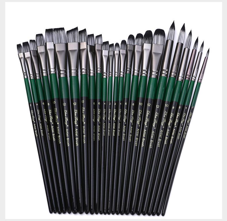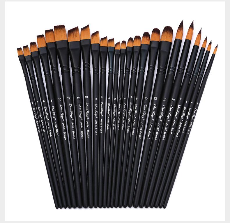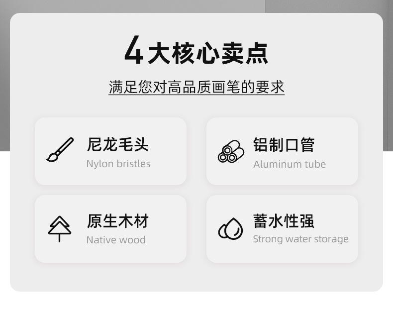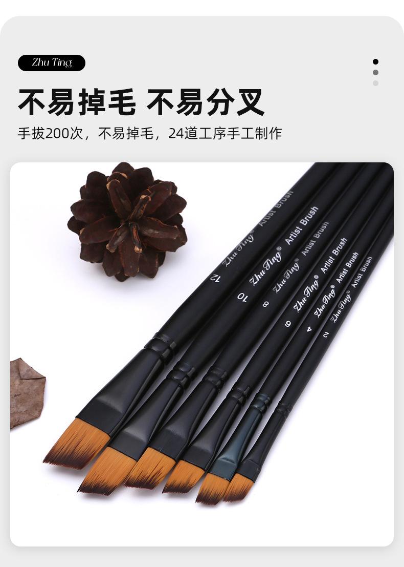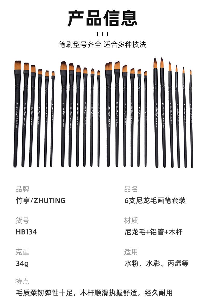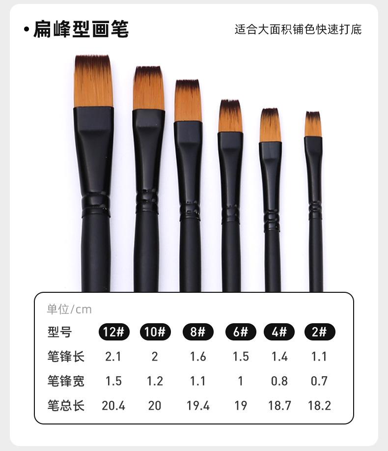 Pincel de lana de nailon de 6 piezas transfronterizo para estudiantes de arte, pintura de bricolaje, pincel de acuarela, pincel de pintura acrílica al óleo, venta al por mayor