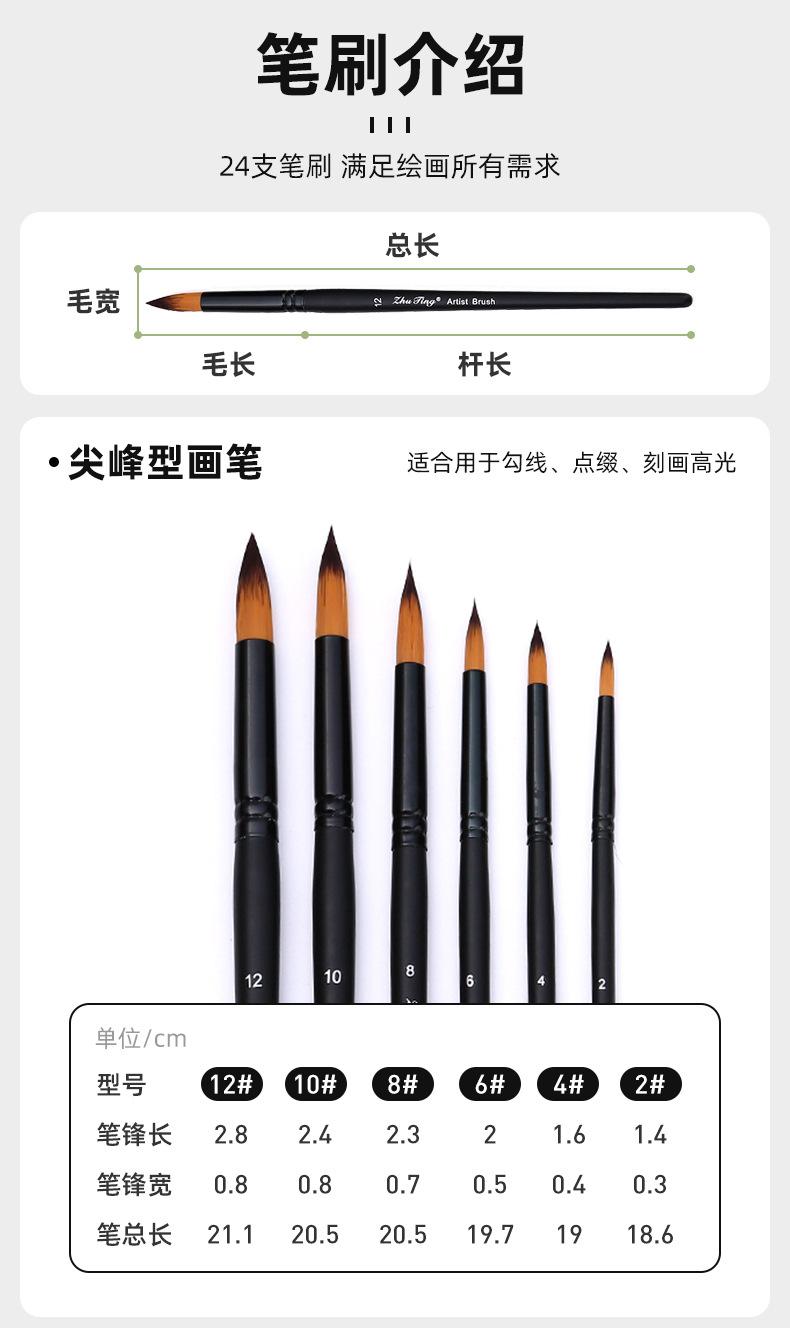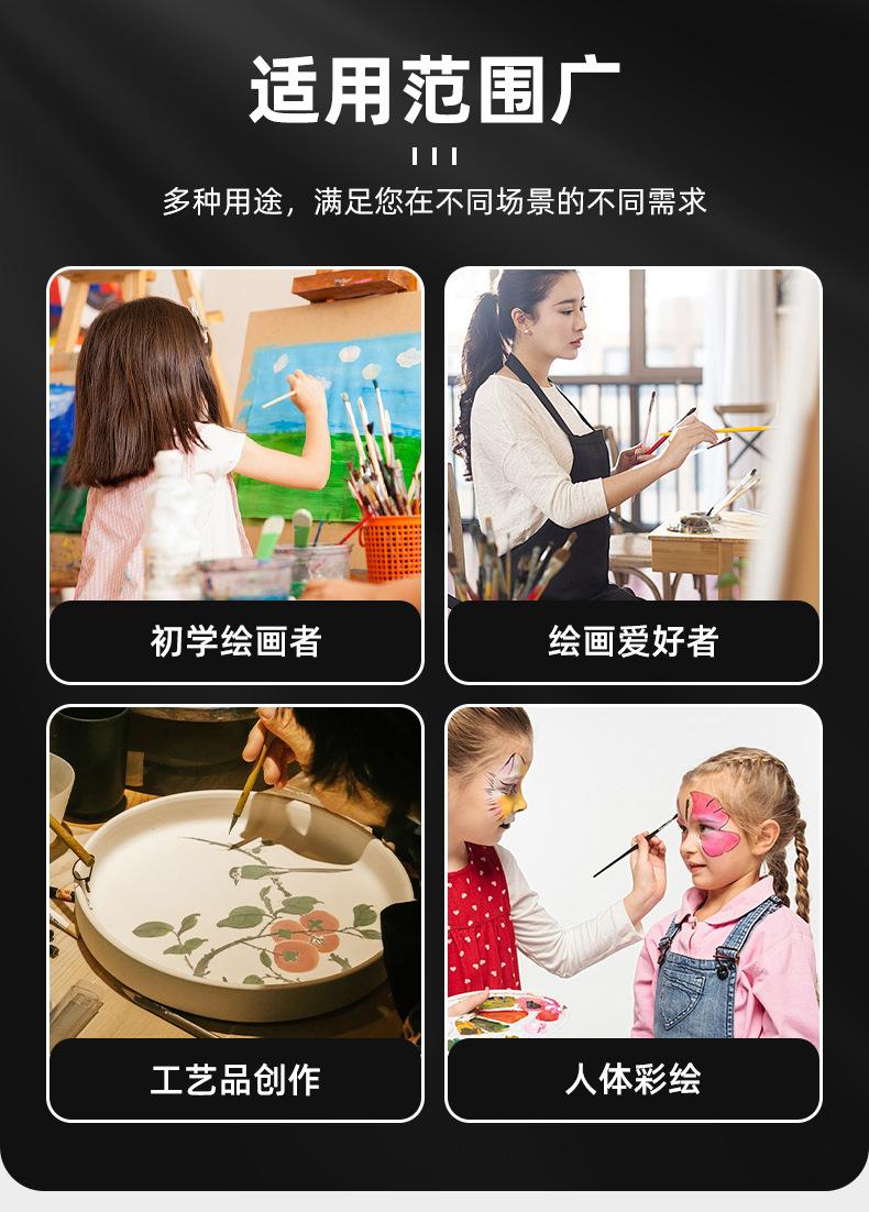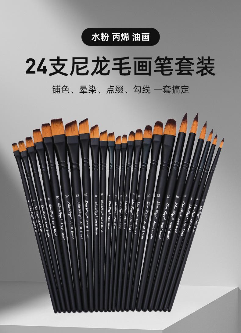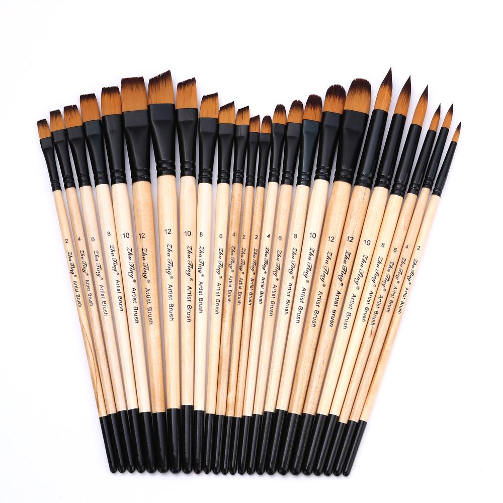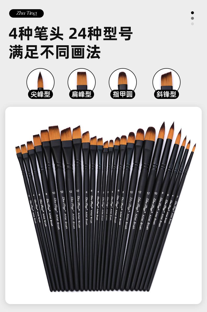Pincel de lana de nailon de 6 piezas transfronterizo para estudiantes de arte, pintura de bricolaje, pincel de acuarela, pincel de pintura acrílica al óleo, venta al por mayor