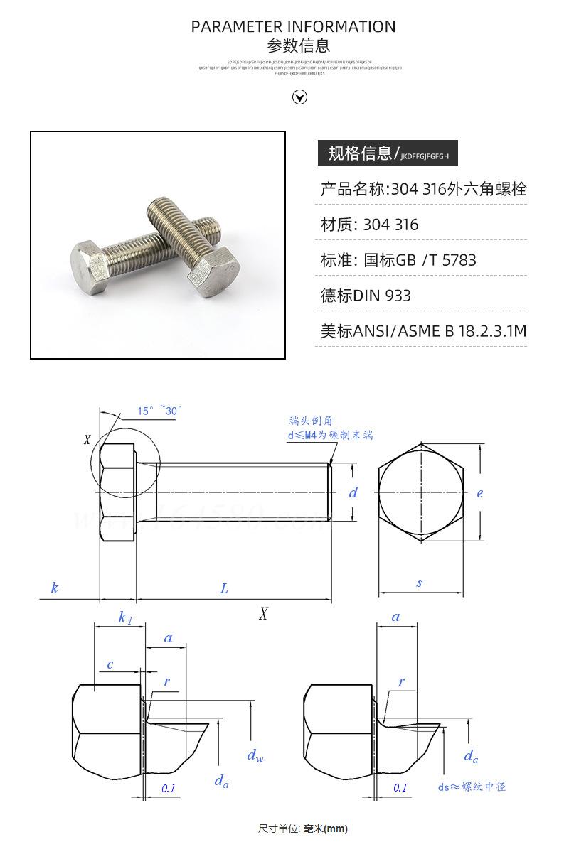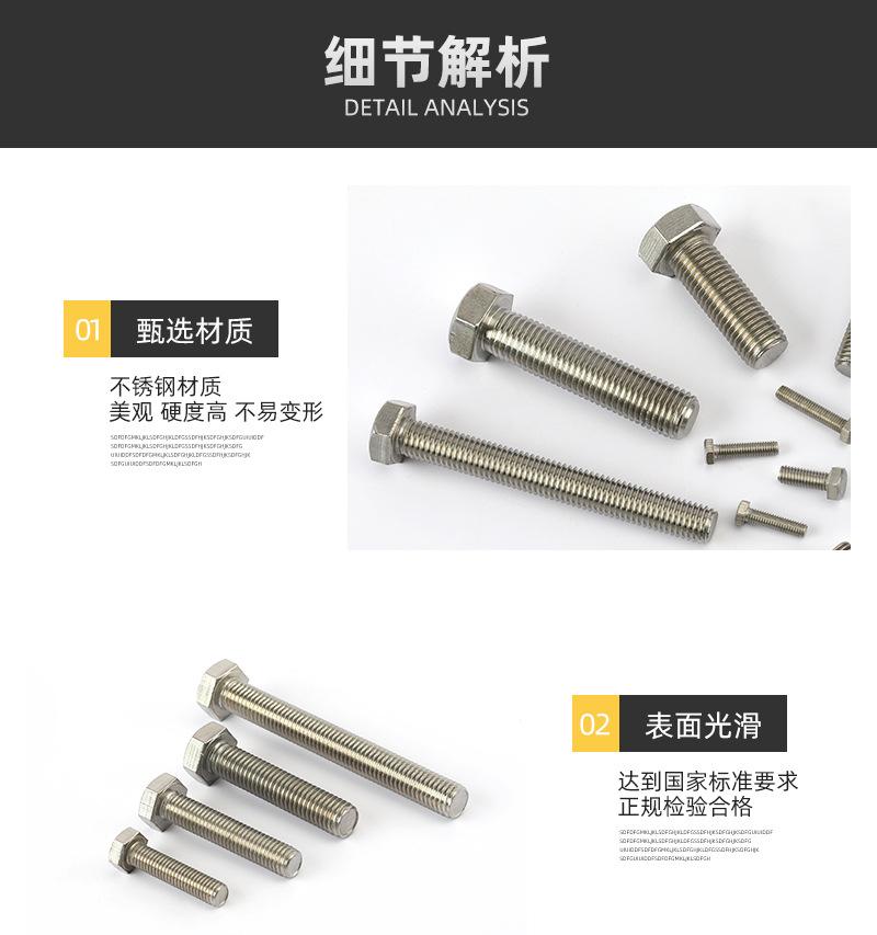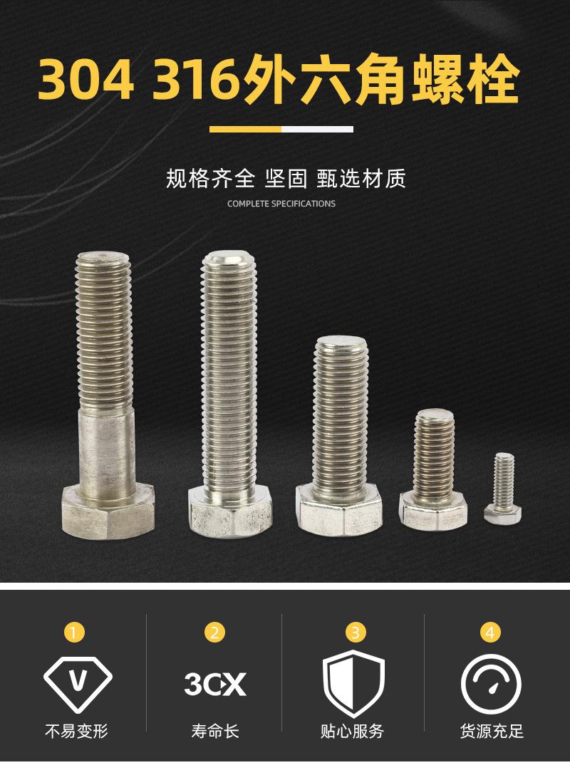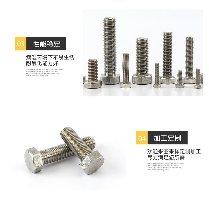 Tornillo de acero inoxidable 304/316 de acero inoxidable de fábrica DIN933 Perno hexagonal exterior Tornillo de acero inoxidable