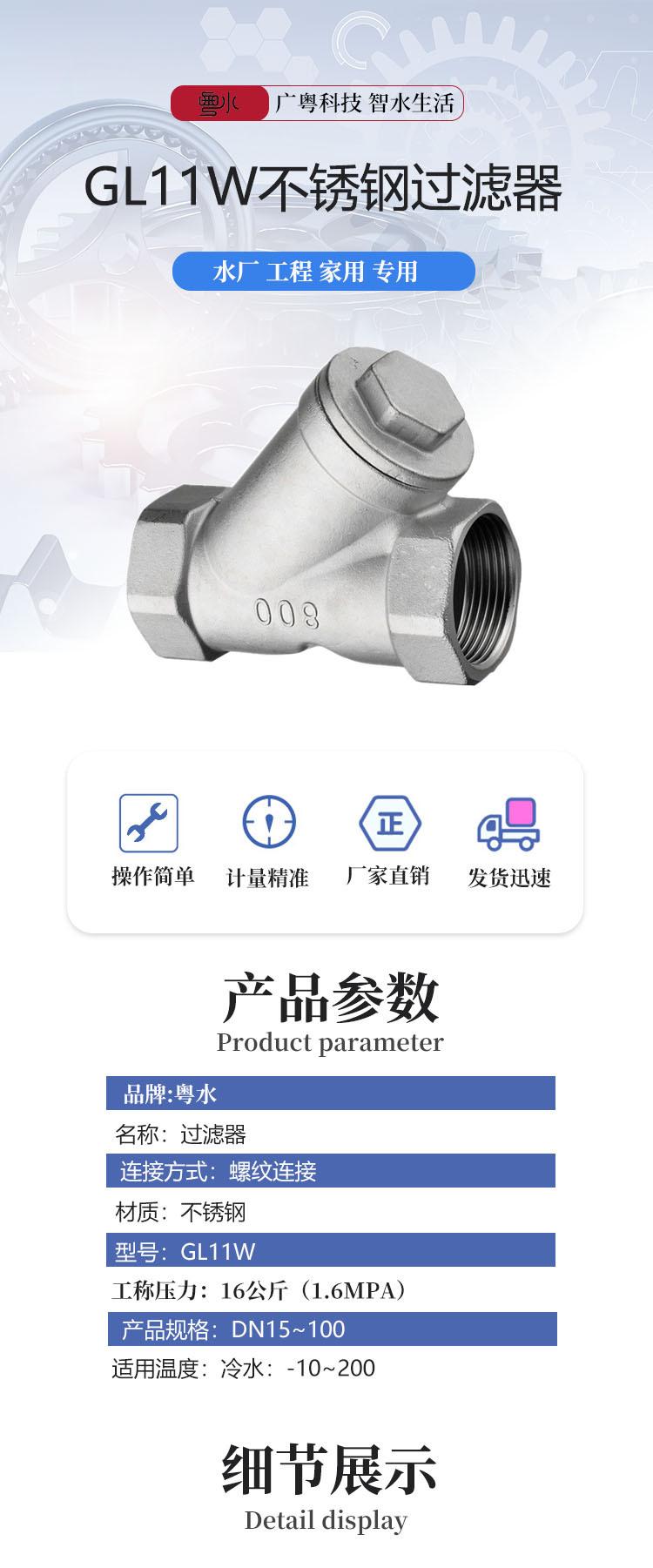 Filtro de Acero Inoxidable 304 4 Puntos 1.0 pulg. 1.5 pulg. Válvula de Filtro de Agua de Grifo Gl11W-16P Acero Válvula de Alcantarillado Tipo Y