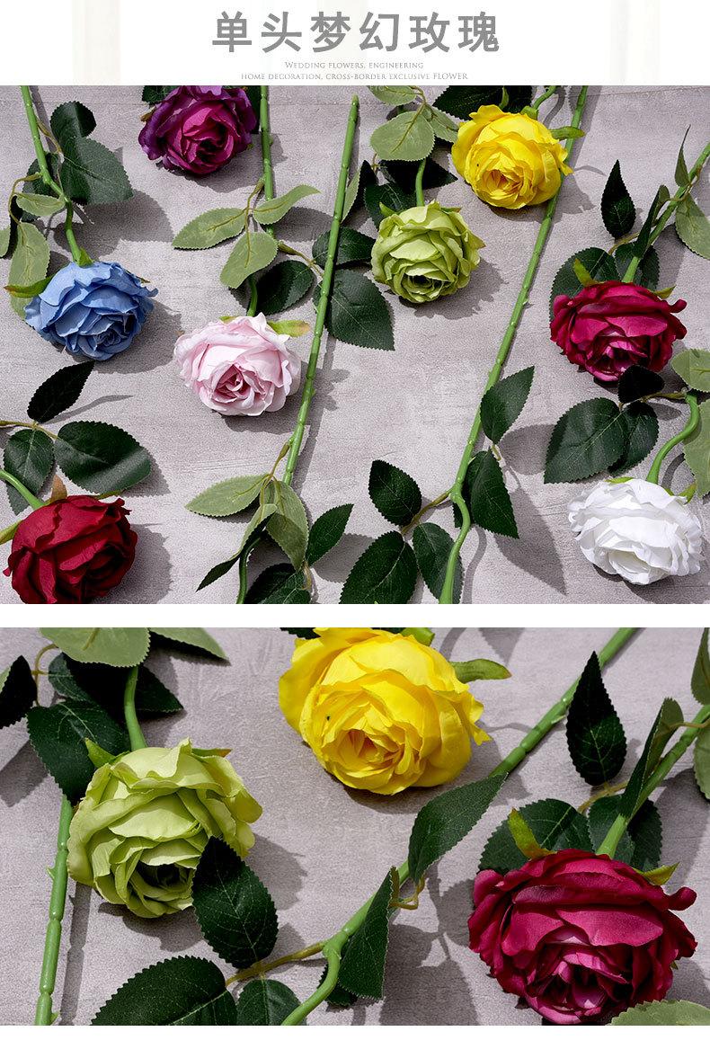 Rosa Fantasía Individual Artificial Artificial Falso Ramo Flor de Seda Flor Artificial Adornos de Decoración para Salón de Estar de Alta Gama para Auditorio de Boda