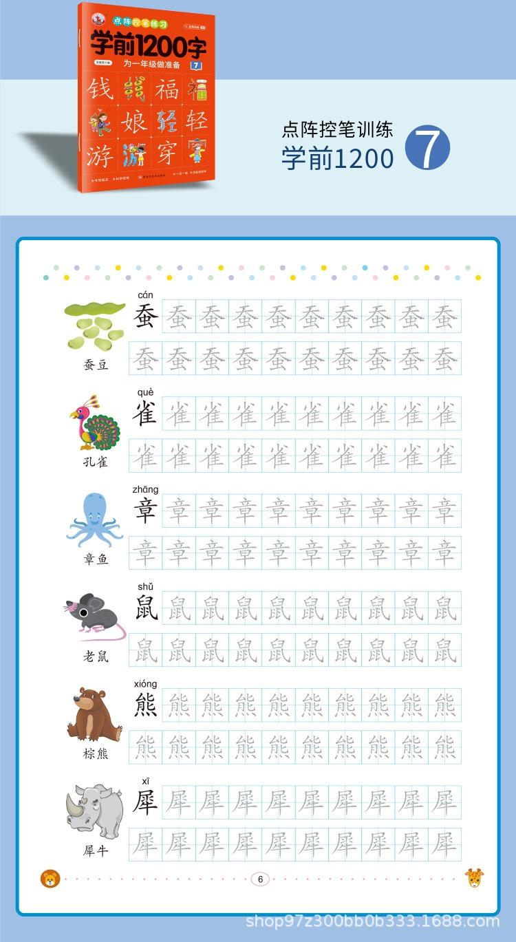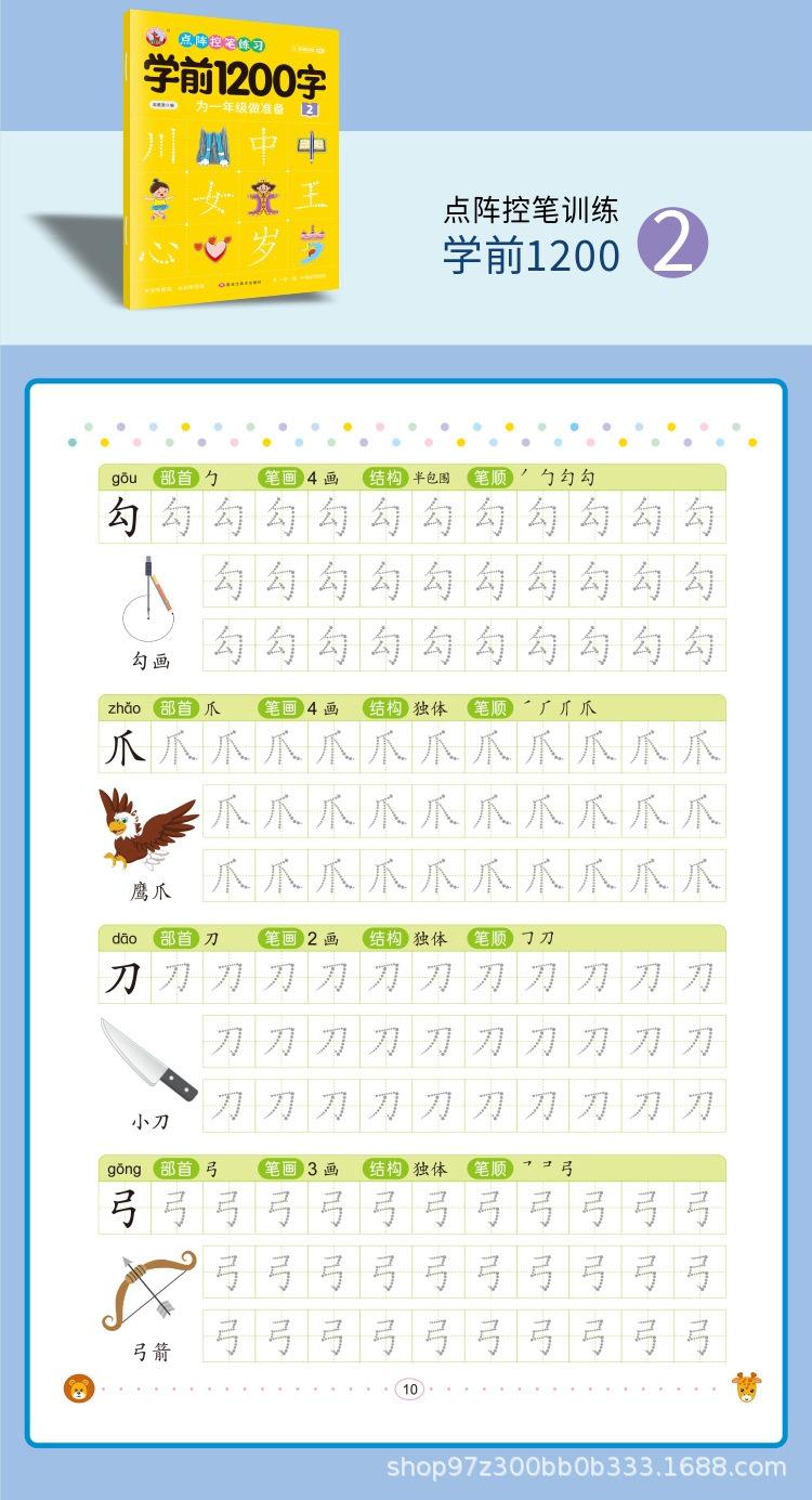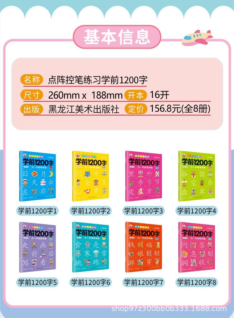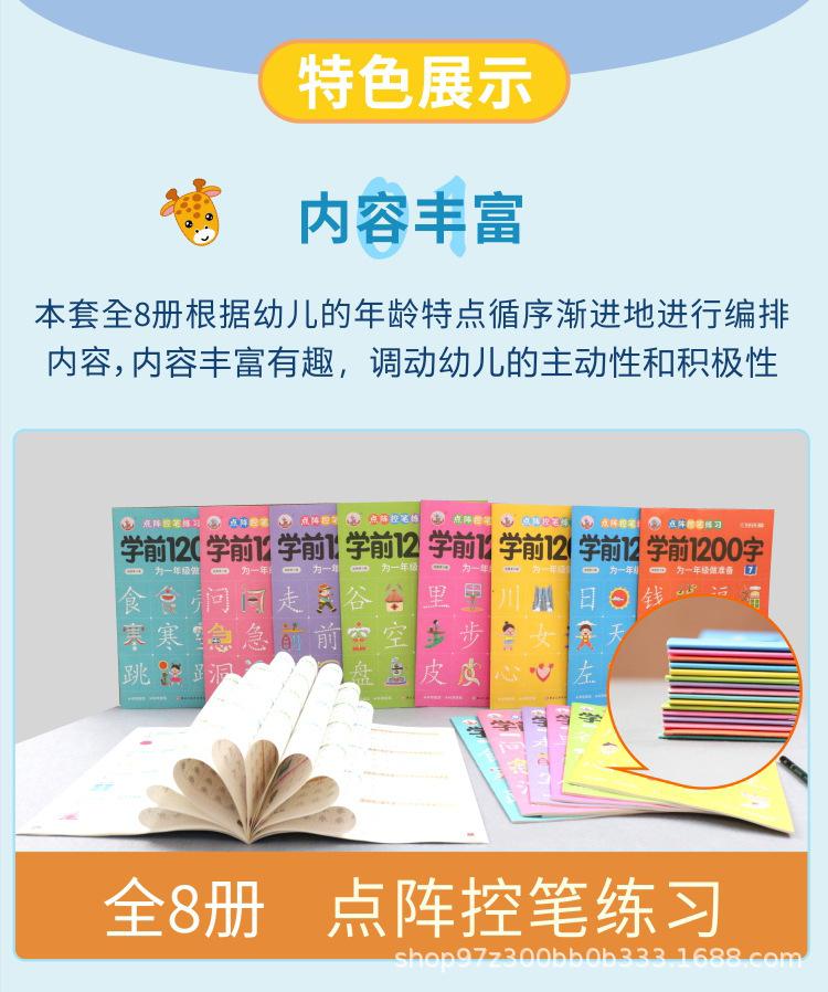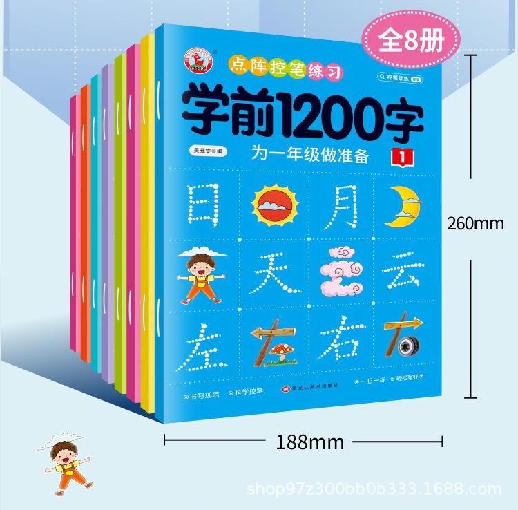 Lápiz de control de matriz de puntos para preescolar, 1200 caracteres, 8 volúmenes, preparación escolar, cuaderno básico de caracteres chinos, conexión joven, trazado de caracteres chinos, Libro Rojo