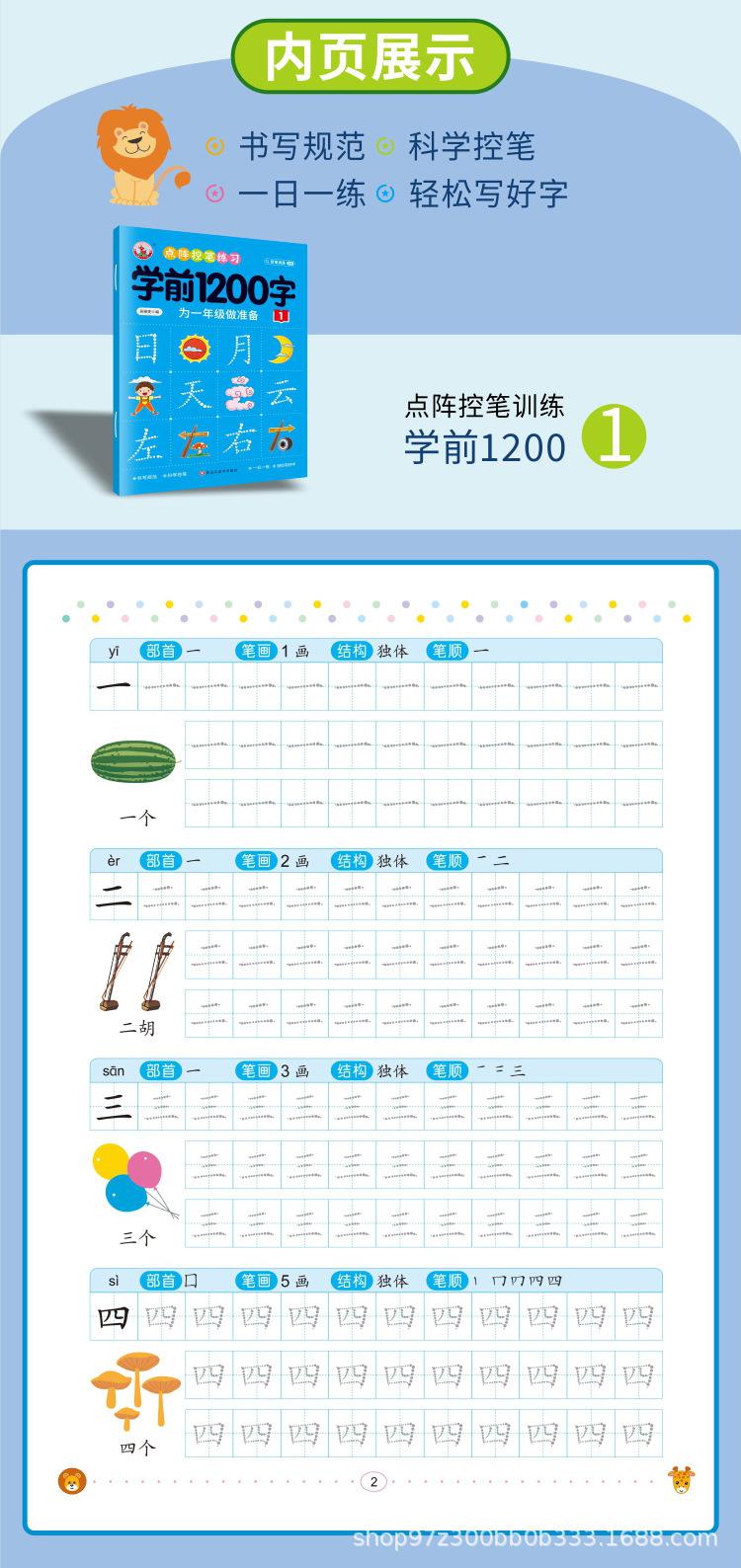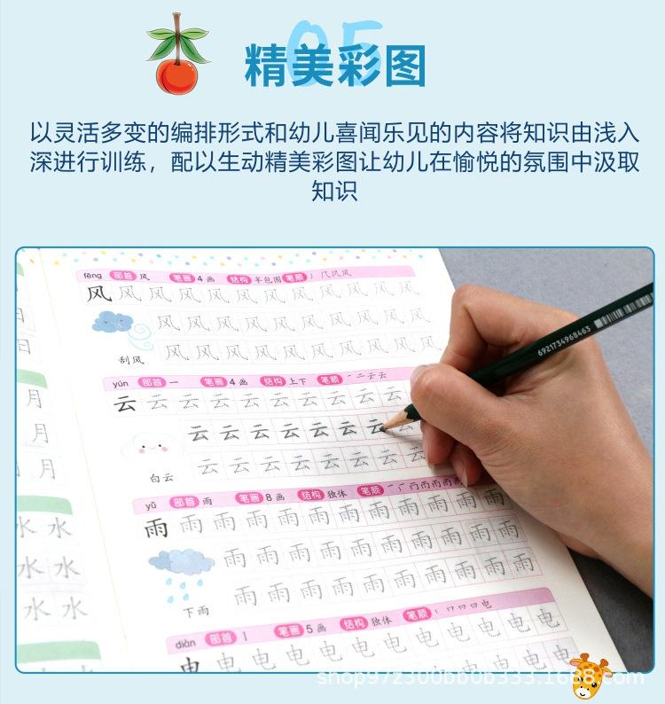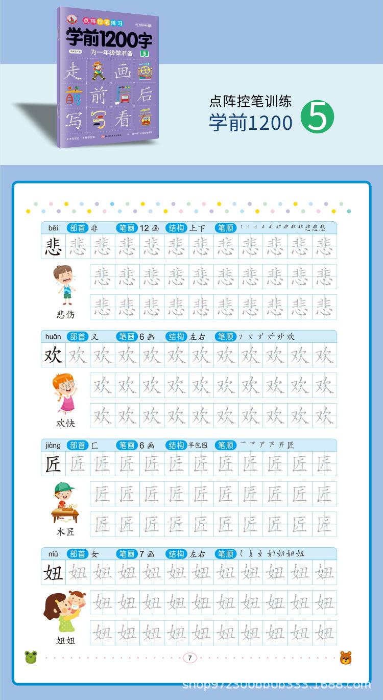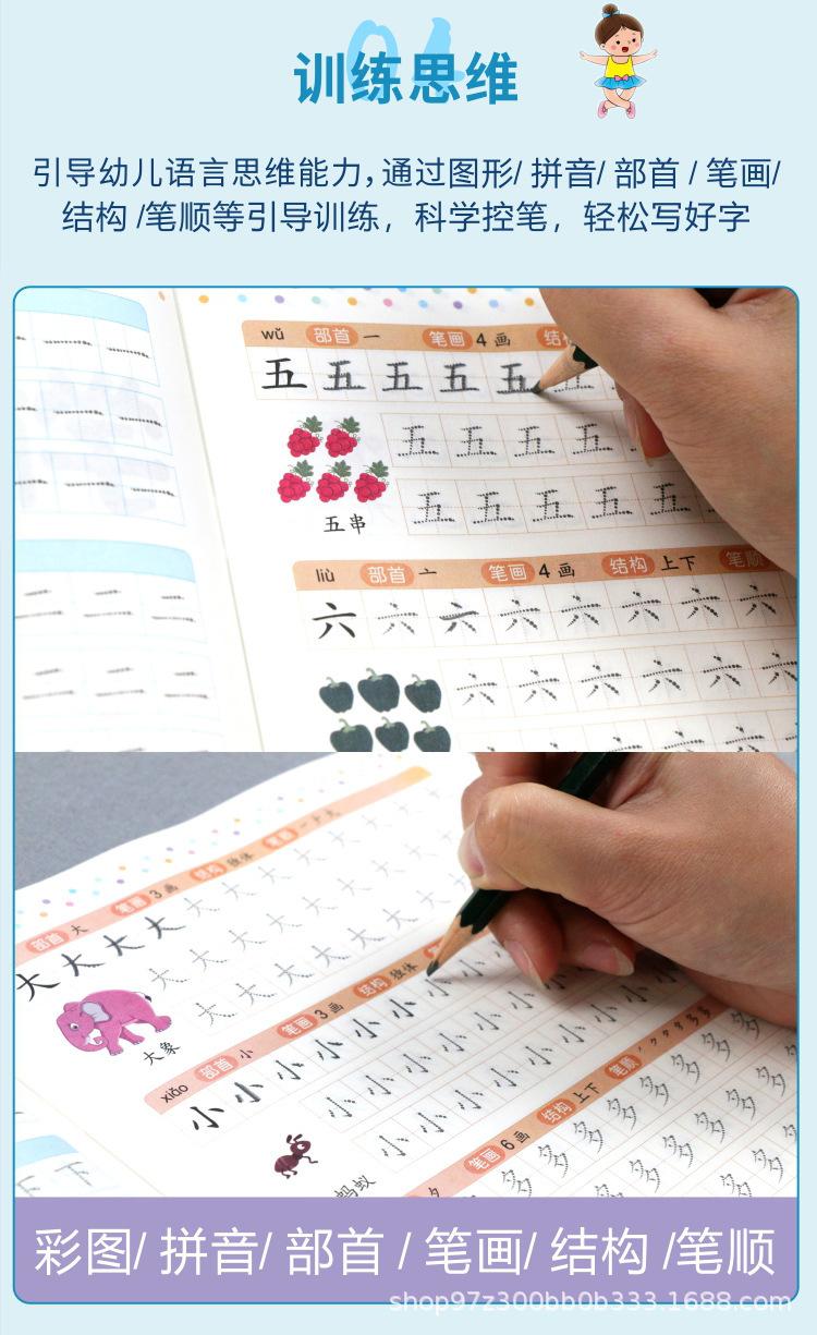 Lápiz de control de matriz de puntos para preescolar, 1200 caracteres, 8 volúmenes, preparación escolar, cuaderno básico de caracteres chinos, conexión joven, trazado de caracteres chinos, Libro Rojo