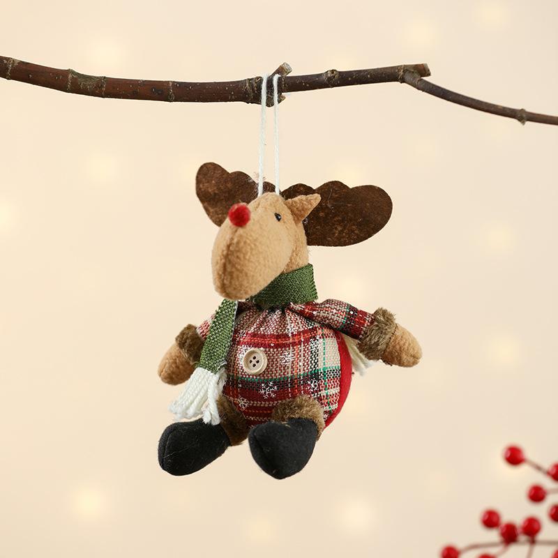 Muñeco de tela a cuadros navideño transfronterizo, colgante pequeño, Papá Noel, muñeco de nieve, alce, adornos pequeños, suministros para arreglos de escena
