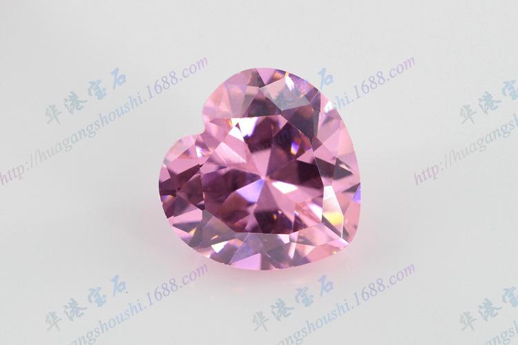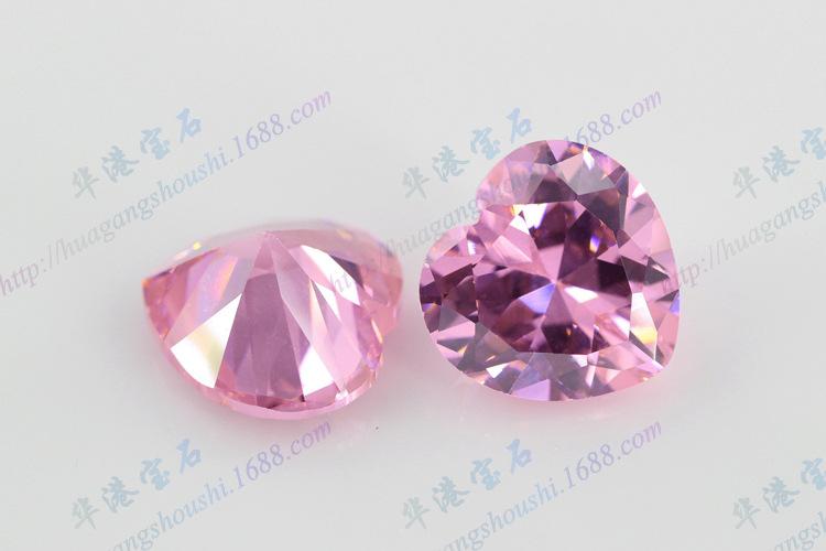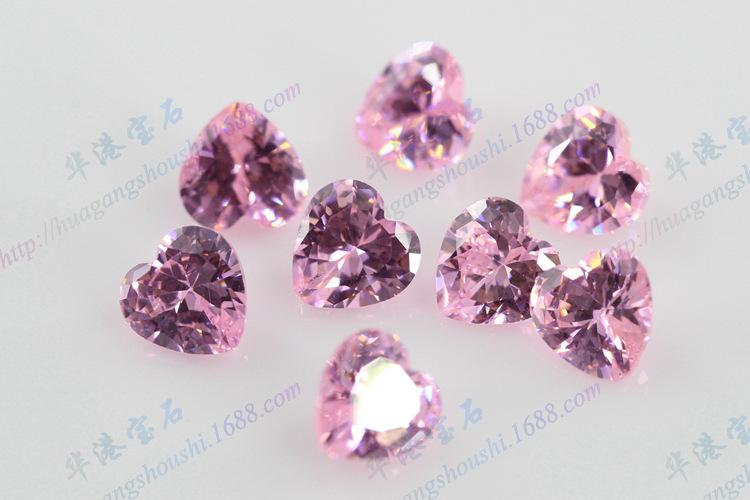 Anillo de piedra desnuda de circón rosa en forma de corazón con gema Huagang, superficie de circonita cúbica sintética artificial, diamante CZ al por mayor