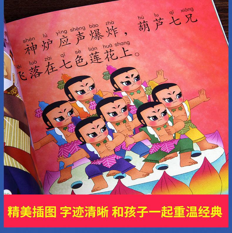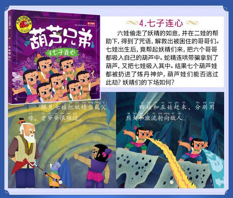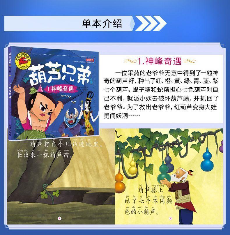 Libro de cuentos de cómics de dibujos animados de los hermanos Hulu Libro ilustrado de Huluwa Obras completas Imagen en color genuina Zhuyin Jardín de infancia Educación temprana