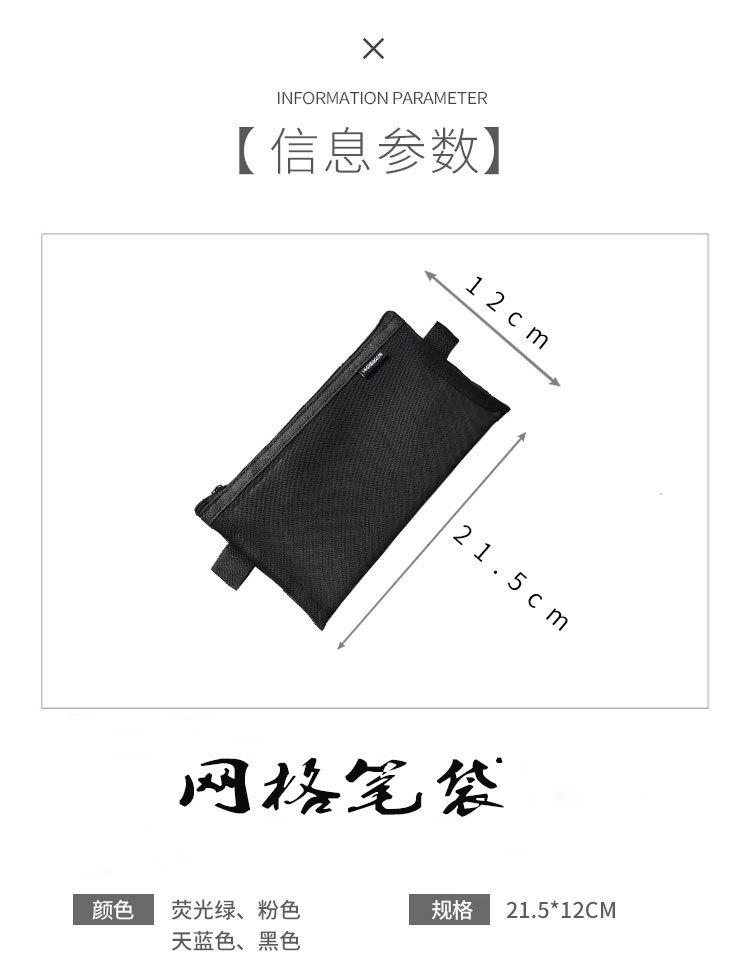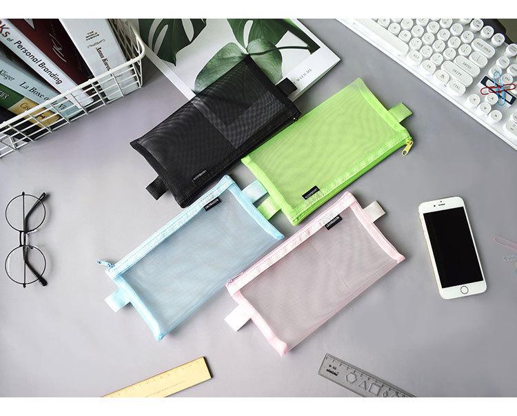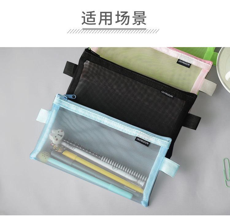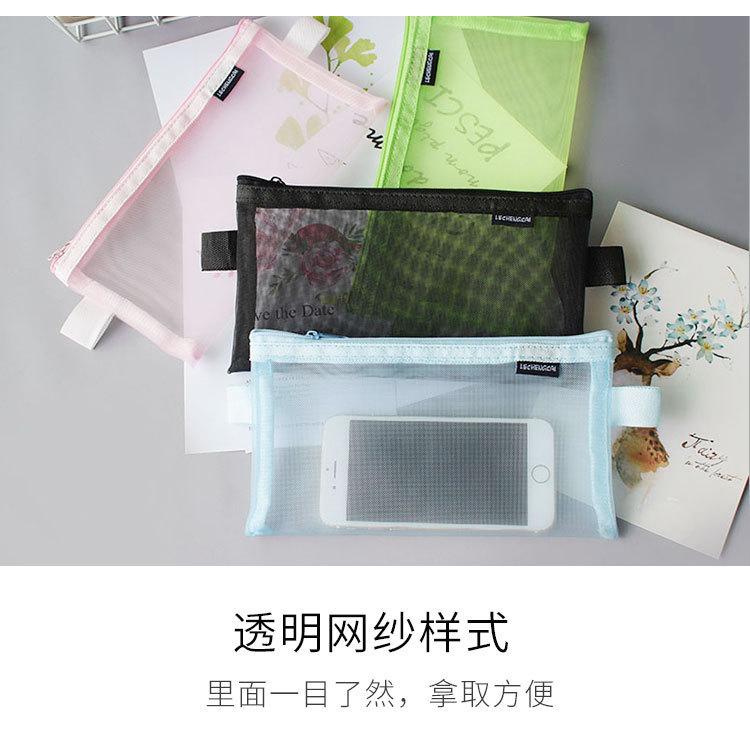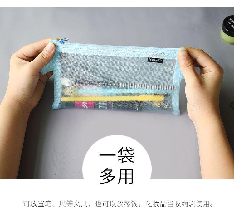 Bolsa de malla transparente simple para lápices, bolsa de almacenamiento para exámenes de estudiantes, bolsa de lápices portátil, bolsa de papelería de gran capacidad