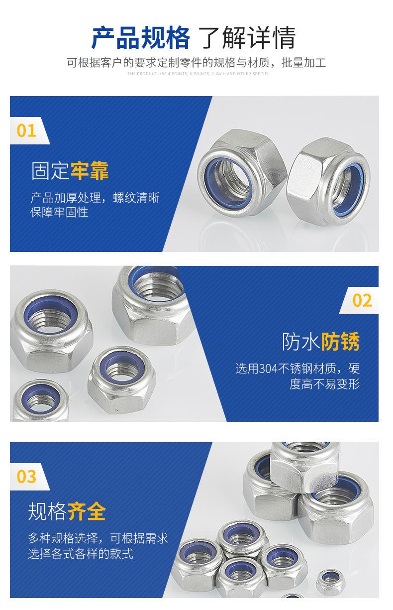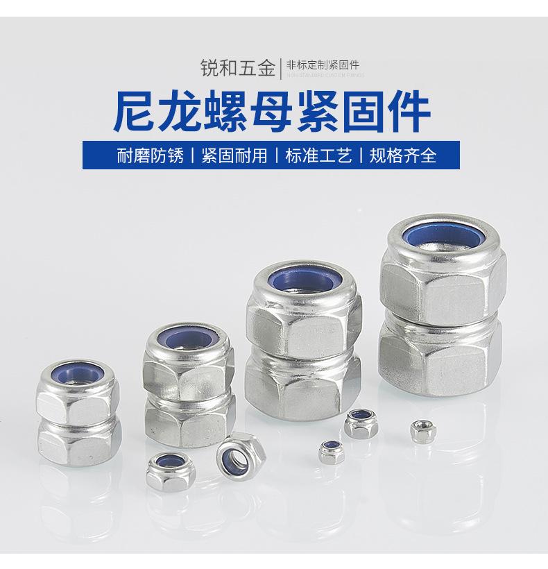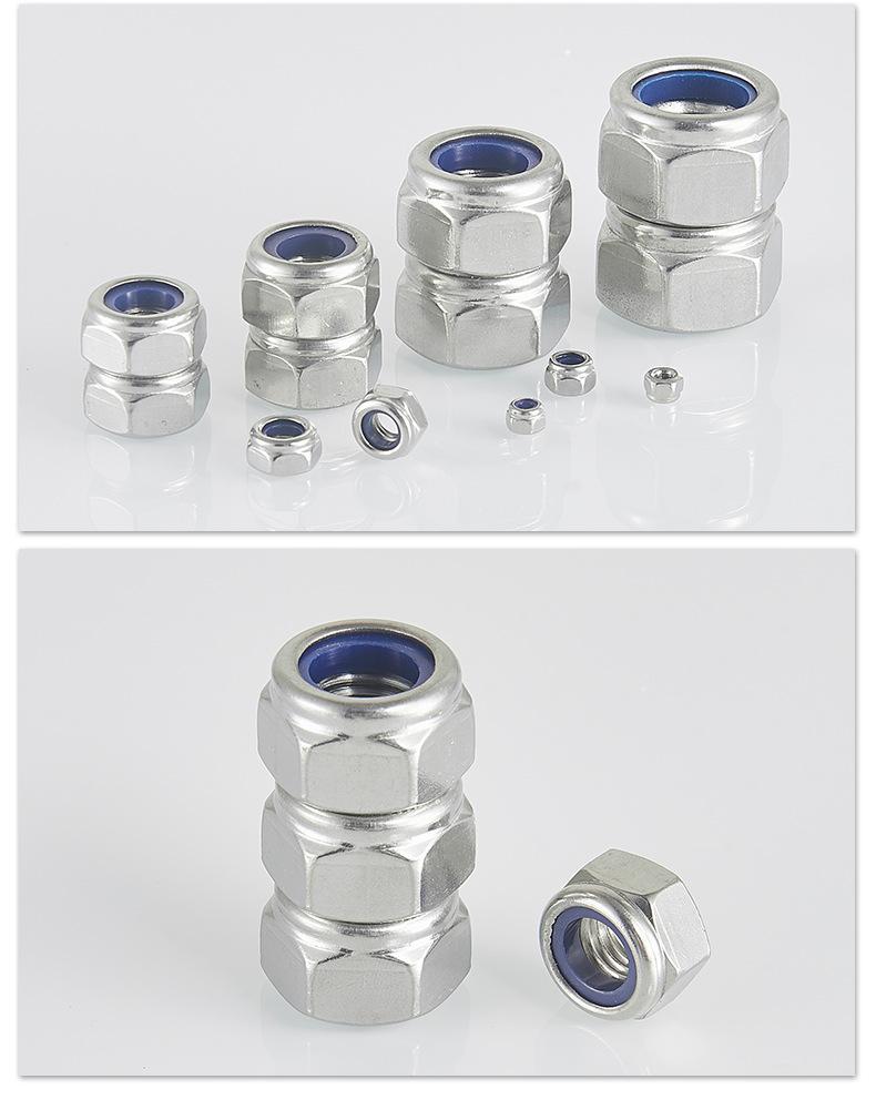 Tuerca de seguridad de acero inoxidable 304/316, tuerca de seguridad de nailon americano, tapa de rosca antideslizante hexagonal, tuerca autoblocante
