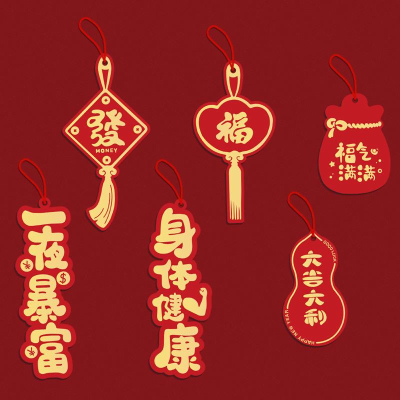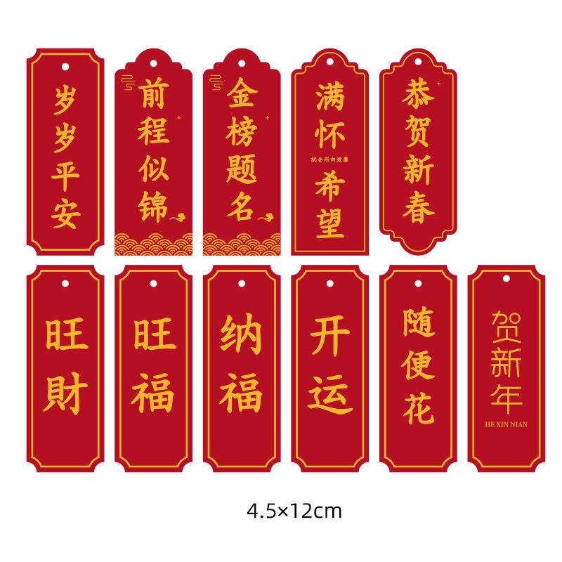 Tarjeta de felicitación de Año Nuevo con diseño de bronce creativo, etiqueta de bendición navideña, mensaje para ascensor, decoración de oficina, tarjeta colgante, envío con cuerda roja