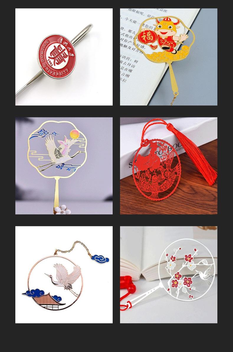 Marcador de Metal Latón Estilo Nacional Venta al por Mayor Logotipo Recorte Creativo Estilo Antiguo Temporada de Graduación Regalo Marcador Personalizado Personalización