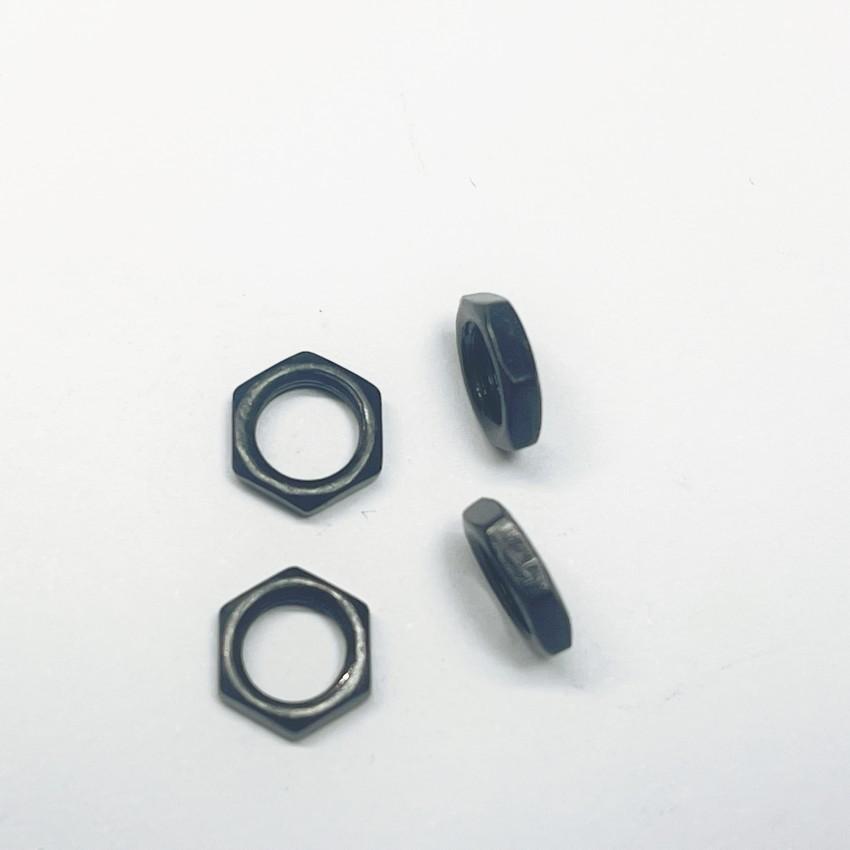 Las tuercas hexagonales delgadas, también conocidas como tuercas hexagonales extraplanas de paso fino, tienen el código de la norma nacional GB/T808-1988. Sus lados opuestos son generalmente similares a los de las tuercas hexagonales estándar, pero su grosor es menor y sus roscas también son más finas, lo que les da una apariencia más plana. Por eso se denominan tuercas hexagonales extraplanas de paso fino. Generalmente, se las conoce como tuercas delgadas. La norma nacional estipula que el diámetro de la rosca debe coincidir con el tamaño de la misma.paso(El ancho de dos hilos adyacentes), por ejemplo: hilo de 6 mm de diámetropasoEs una rosca de 1mm y 8mm de diámetro.pasoEl paso de rosca de las roscas de 1,25 mm y 10 mm es de 1,5 mm, y el de las roscas de 12 mm es de 1,75 mm. Si el paso de la tuerca es menor que el especificado en la norma nacional, se considera una tuerca de paso fino.