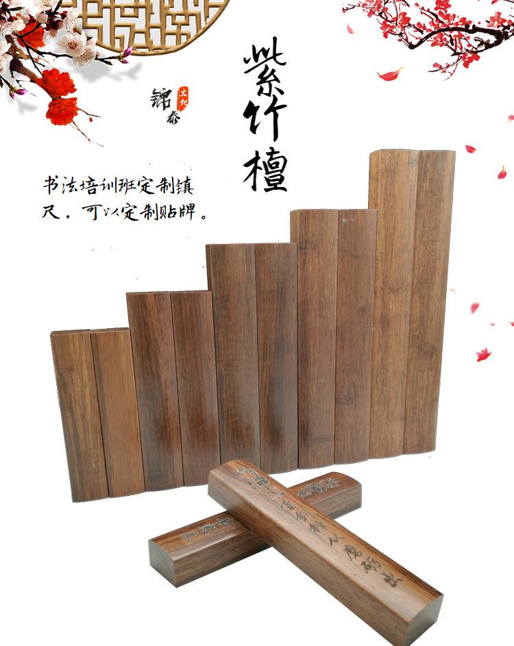 Estudiantes Pisapapeles de Madera de Bambú Madera Roja Catalpa Negra Brillante Regla Papel Prensado Pincel Caligrafía Curso de Capacitación Estudio Cuatro Tesoros