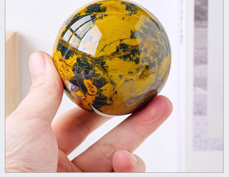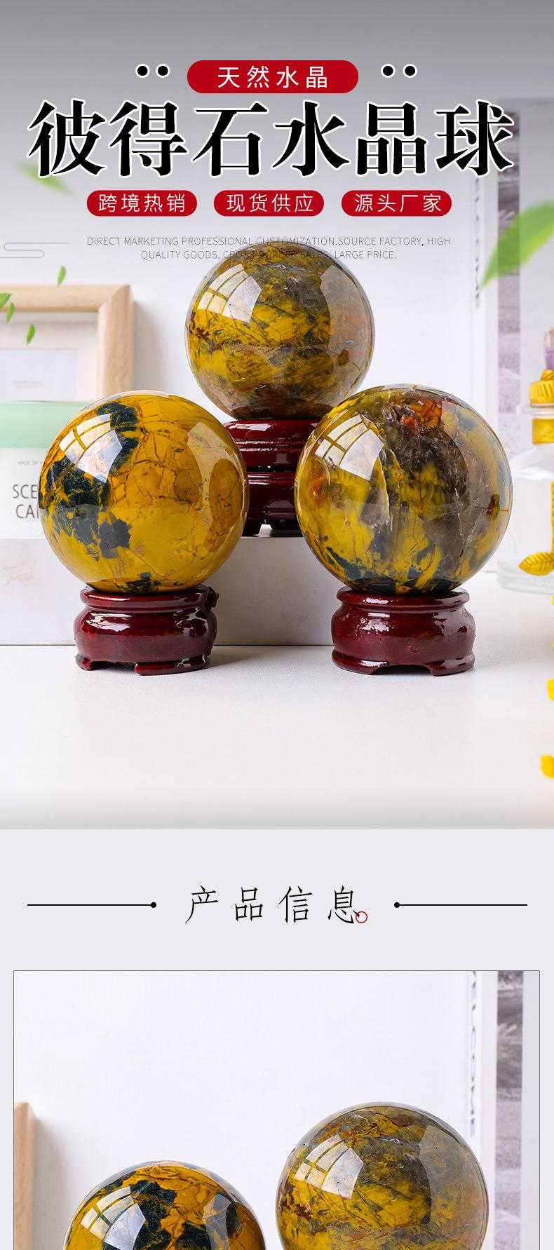 Bola de cristal de piedra Peter amarilla natural, ágata de cristal, piedra original pulida, adornos artesanales para escritorio de oficina y hogar.
