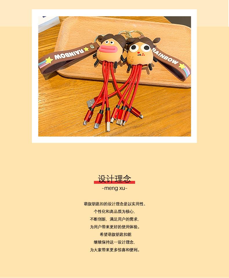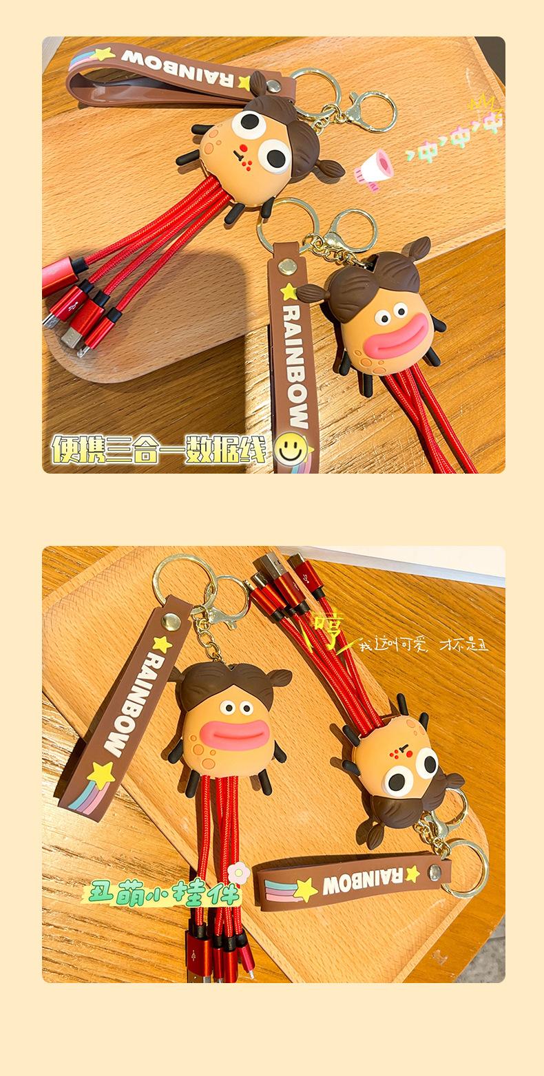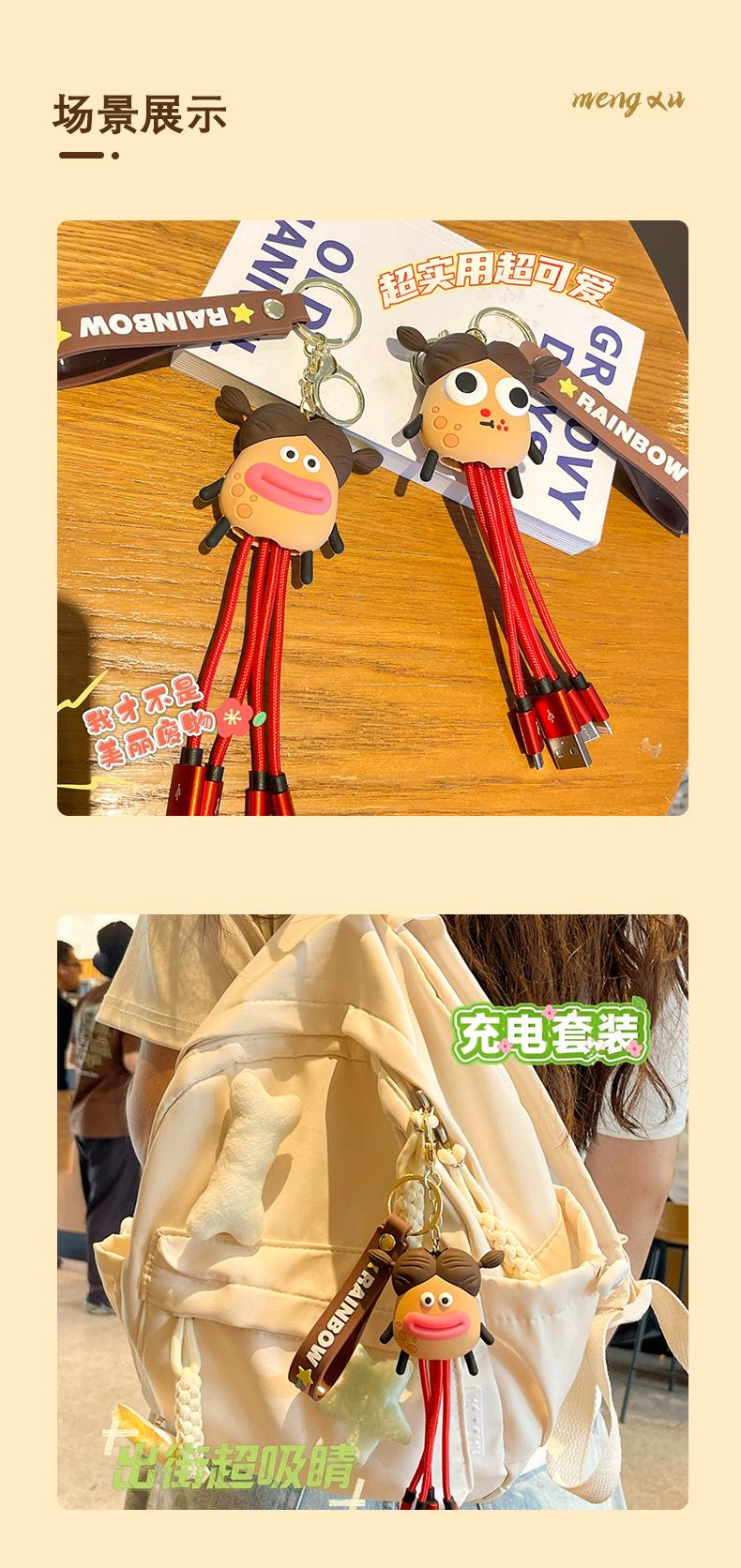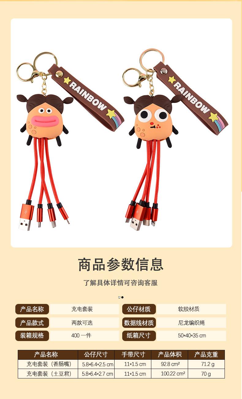 Llavero de dibujos animados de Potato King Data Line, juguete de Big Eye Monster Dolly, bolsa, accesorios colgantes, línea de carga, llavero colgante