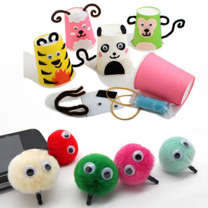 Animales con respaldo adhesivo, ojos móviles blancos y negros, accesorios de juguete coloridos, materiales hechos a mano para jardín de niños