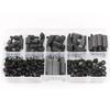 PDLas especificaciones de este producto son: 180 piezas de tornillos de nailon negros m3 caja combinada de accesorios