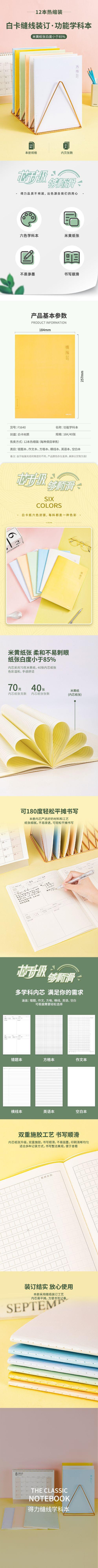 Deli F1640 sutura texto línea horizontal texto en blanco tema equivocado inglés cuadrado 40 páginas estudiante